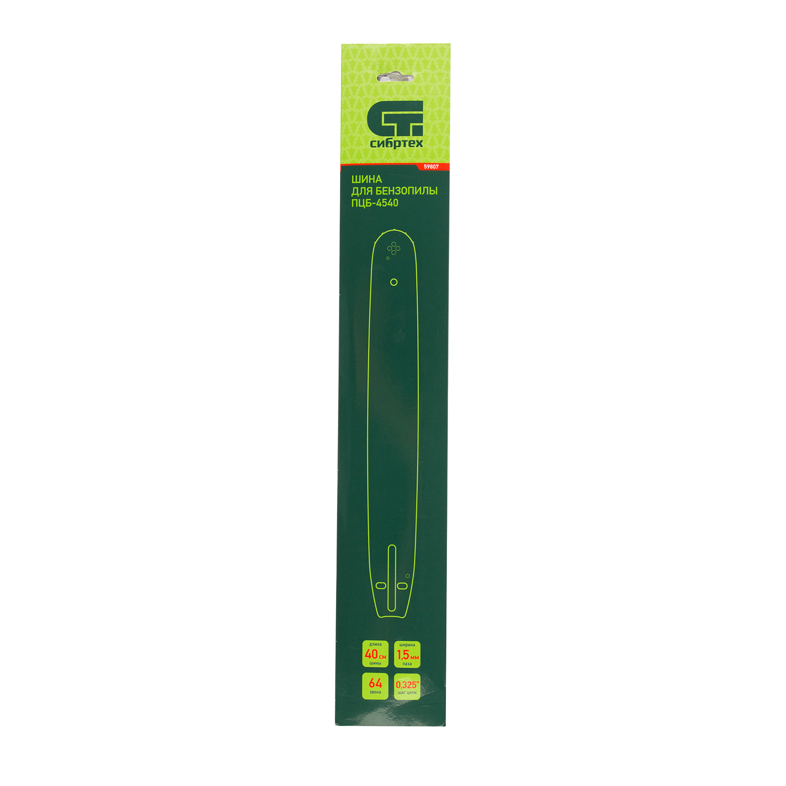 Пильная шина Сибртех 59807 используется в качестве сменной фурнитуры с цепной бензиновой пилой Сибртех ПЦБ-4540. Длина 40 см (16") позволяет использовать шину для работ на дачном участке, в походах, на охоте и рыбалке. На шину надевается цепь с 64 звеньями (шаг 0,325″, паз 1,5 мм), которых достаточно для формирования ровного среза на древесине мягкой и средней твердости.