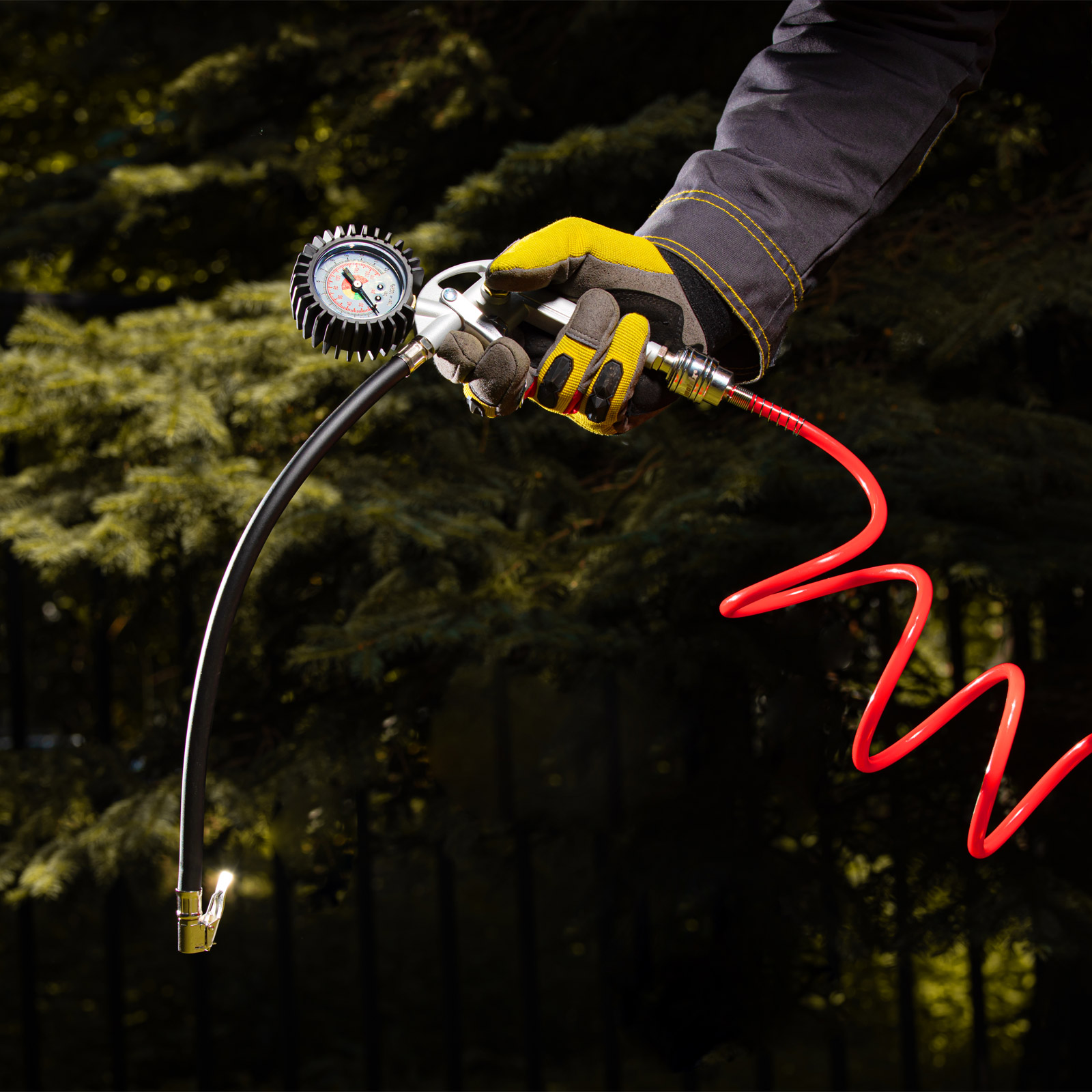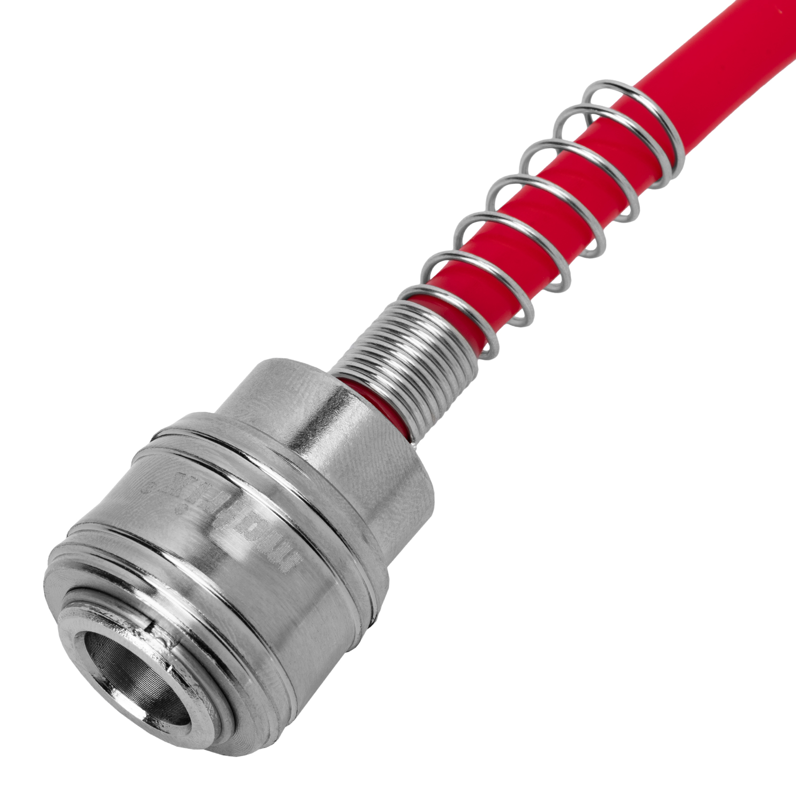 - Максимальное давление составляет 18 бар, что позволяет использовать шланг с мощным компрессорным оборудованием.