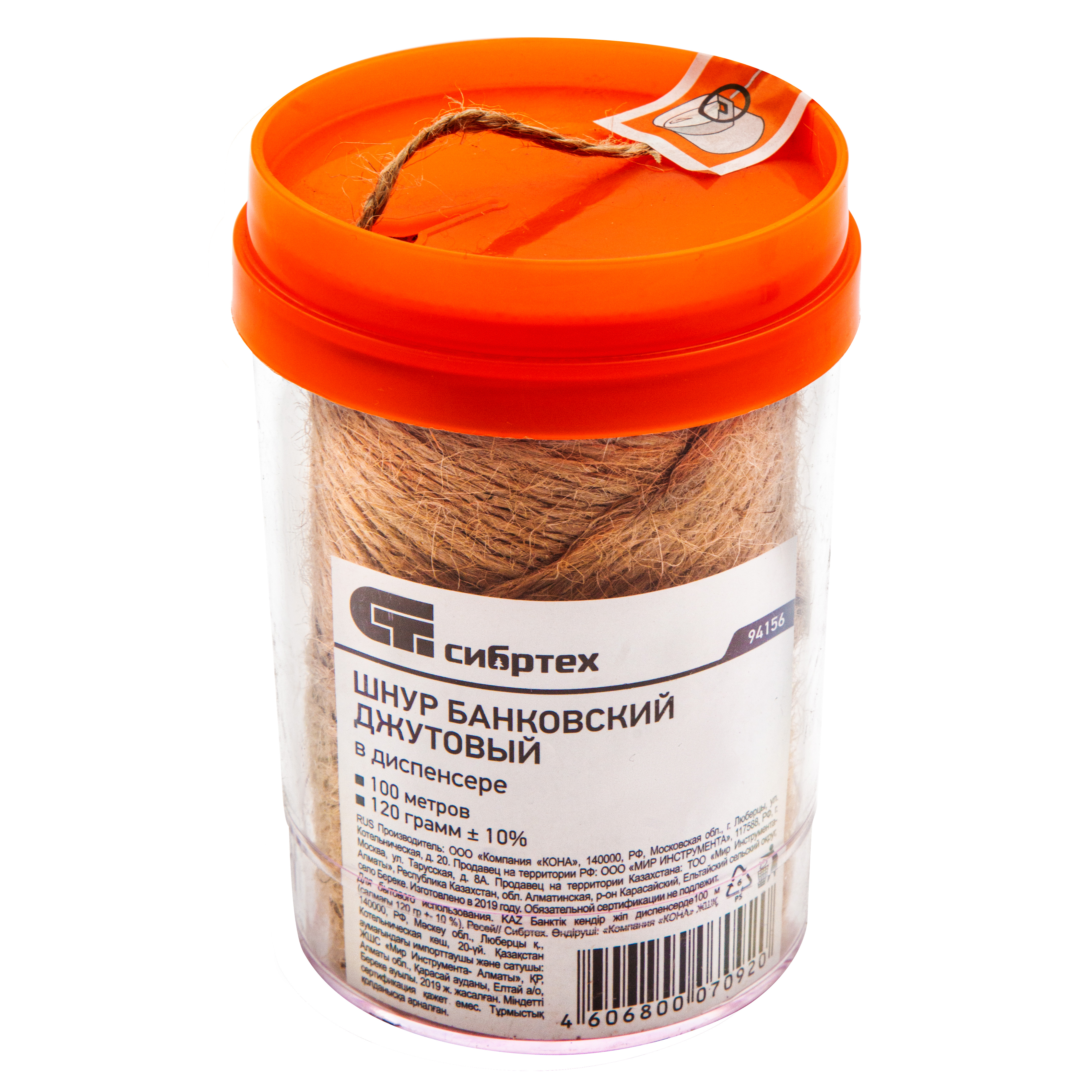 Шнур банковский джутовый 100 м, в диспенсере, вес 120 гр +- 10%, Сибртех