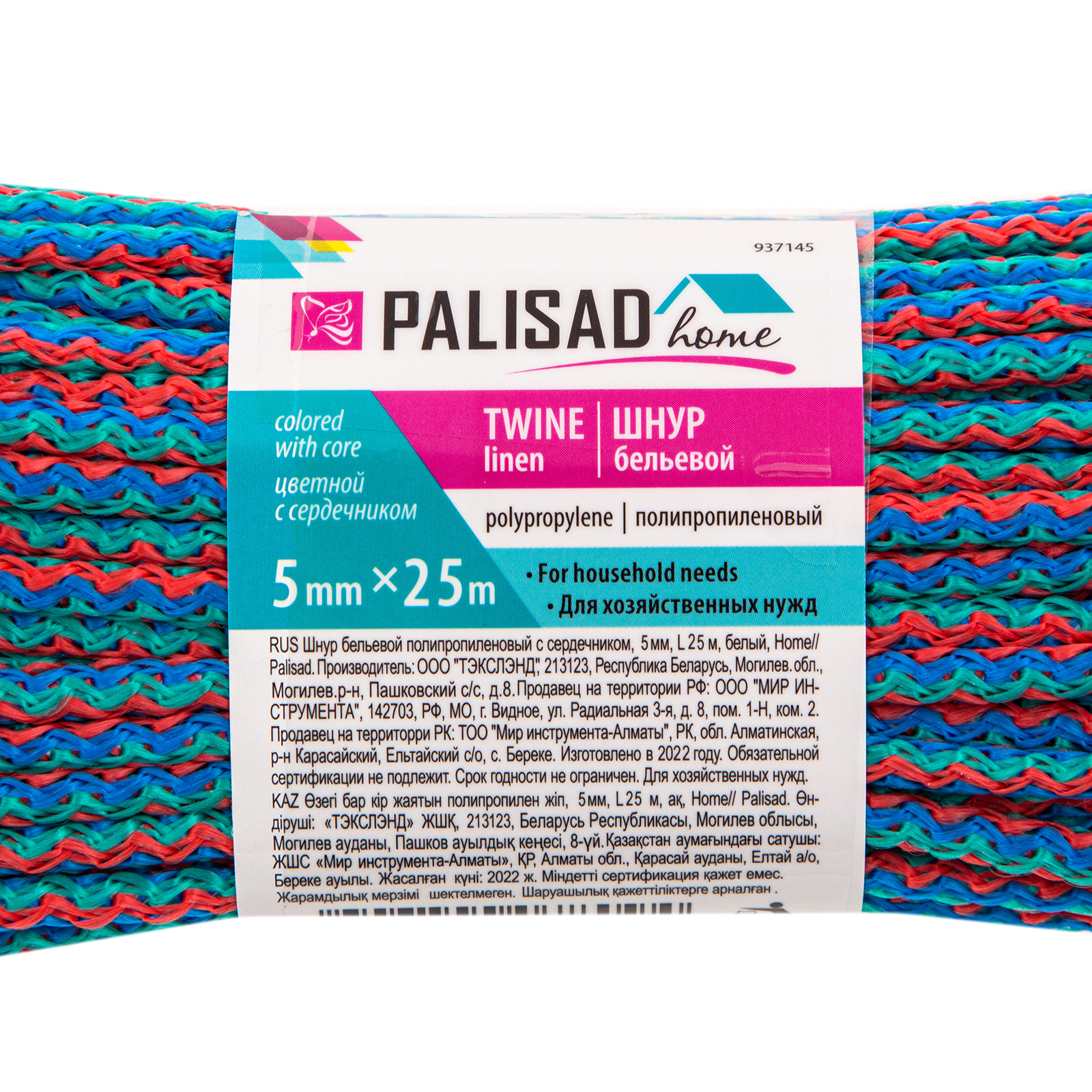 Шнур бельевой полипропиленовый с сердечником, 5 мм L 25 м, цветной, Home Palisad в Казани