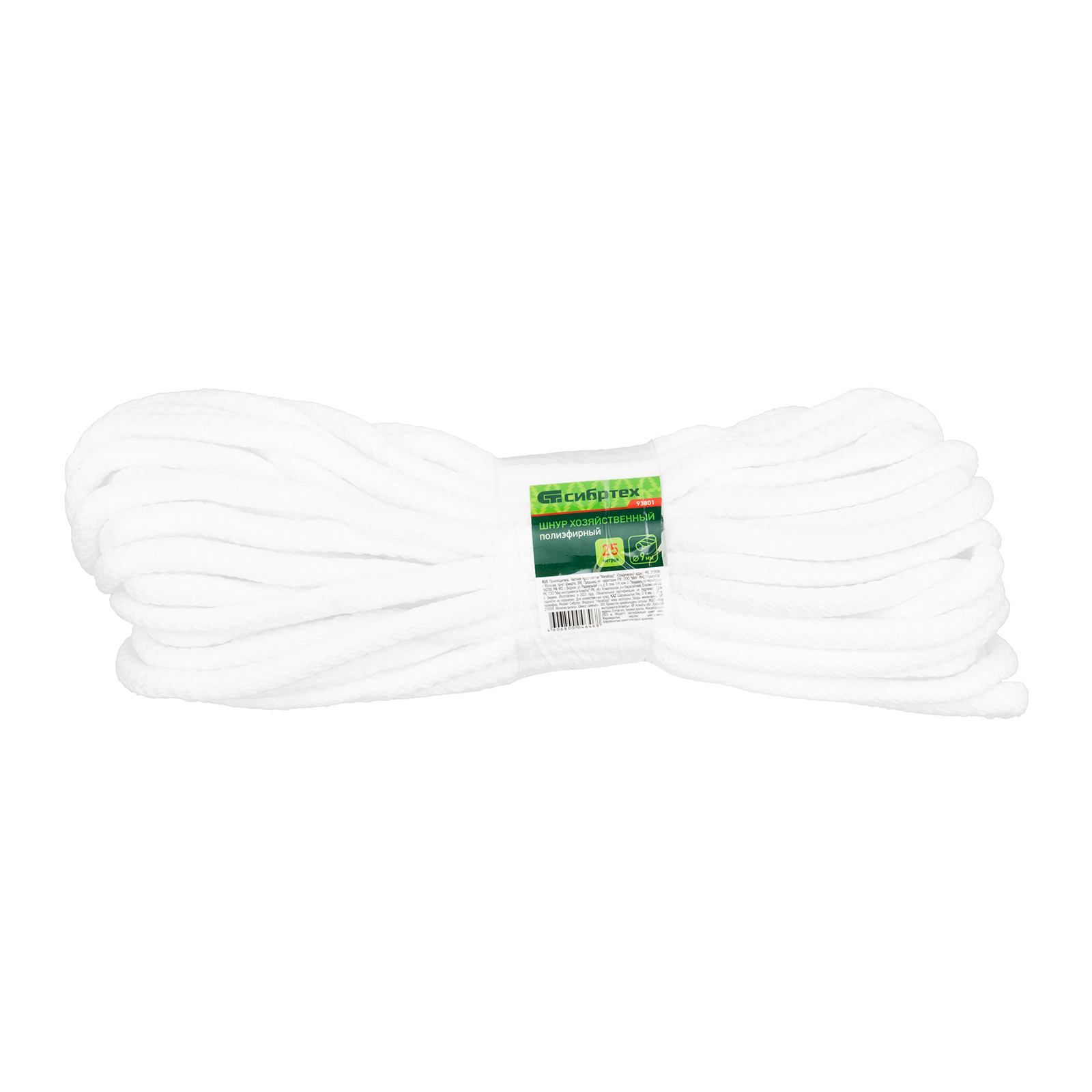 Шнур хозяйственный, D 9 мм, L 25 м, полиэфирный Сибртех в Казани