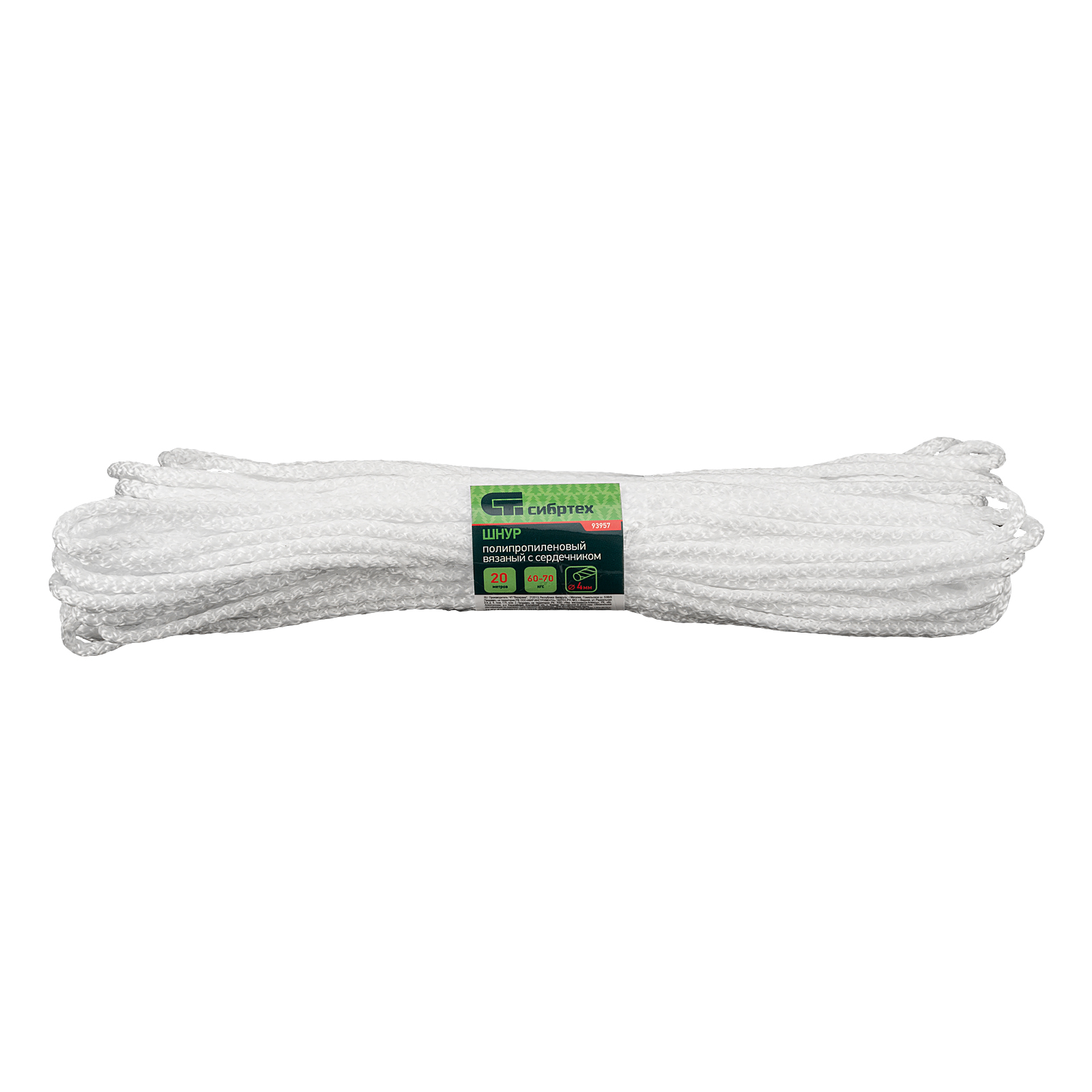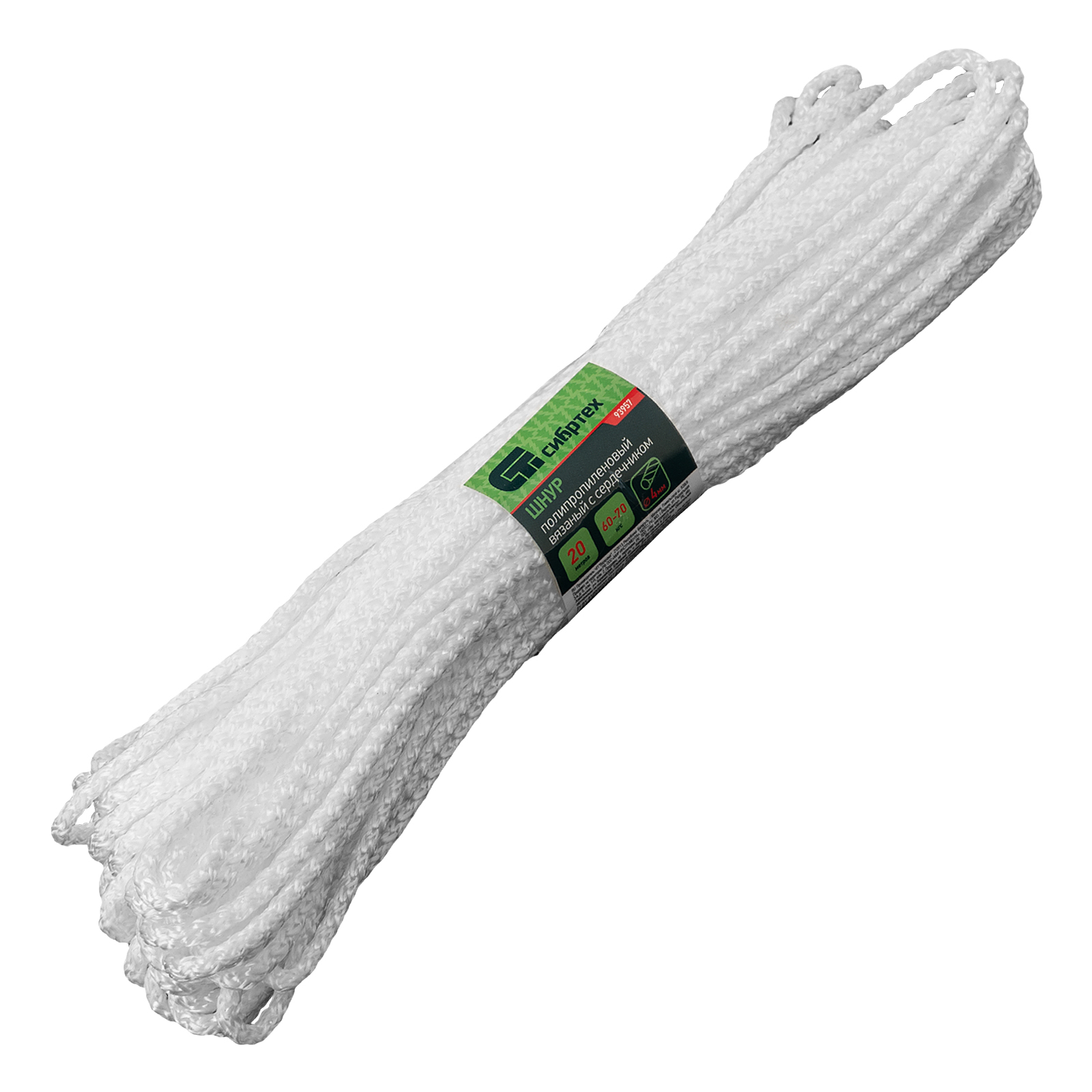 Шнур вязаный полипропиленовый с серд. белый, 4 мм, L 20 м, Сибртех в Казани