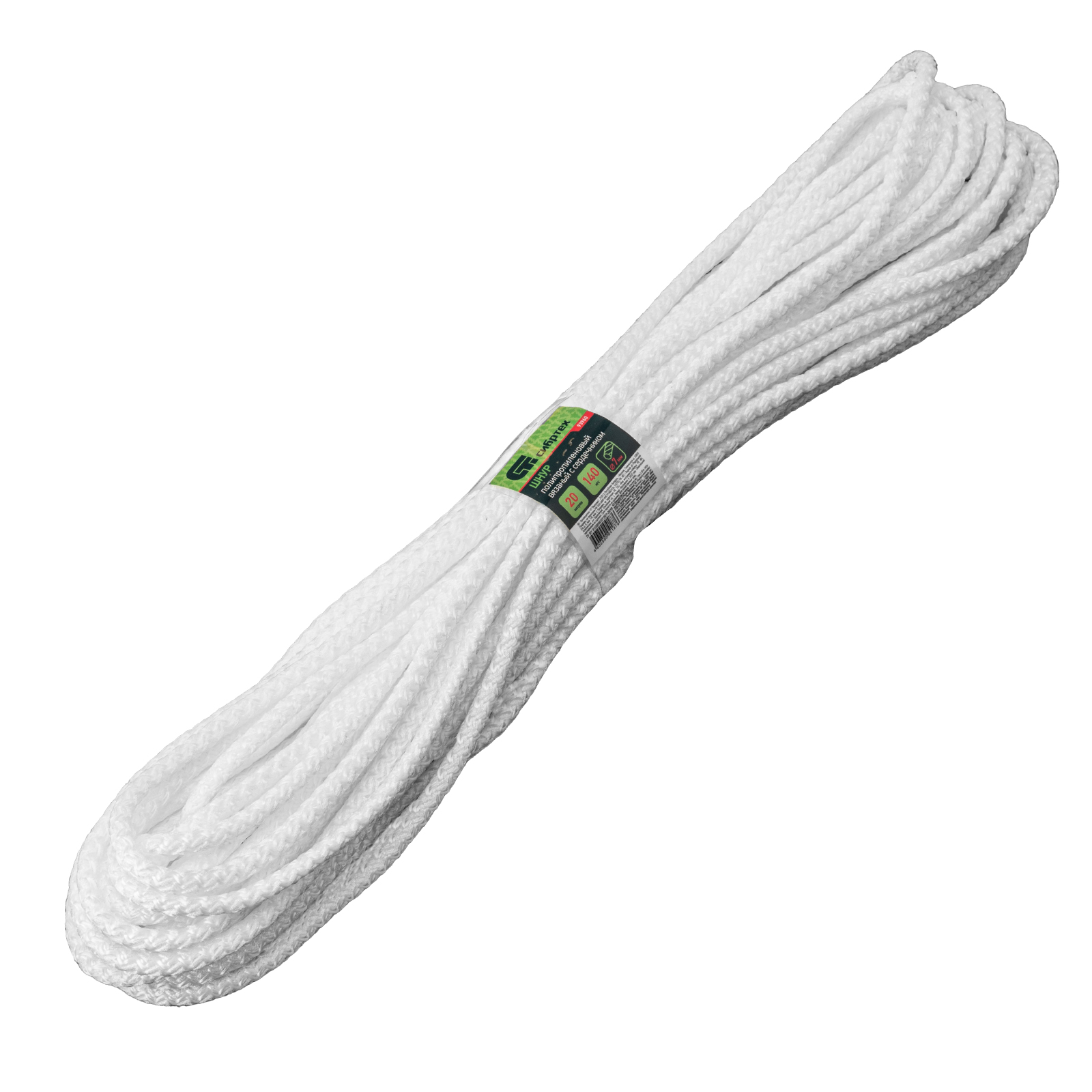 Шнур вязаный полипропиленовый с серд. белый, 7 мм, L 20 м, Сибртех в Казани