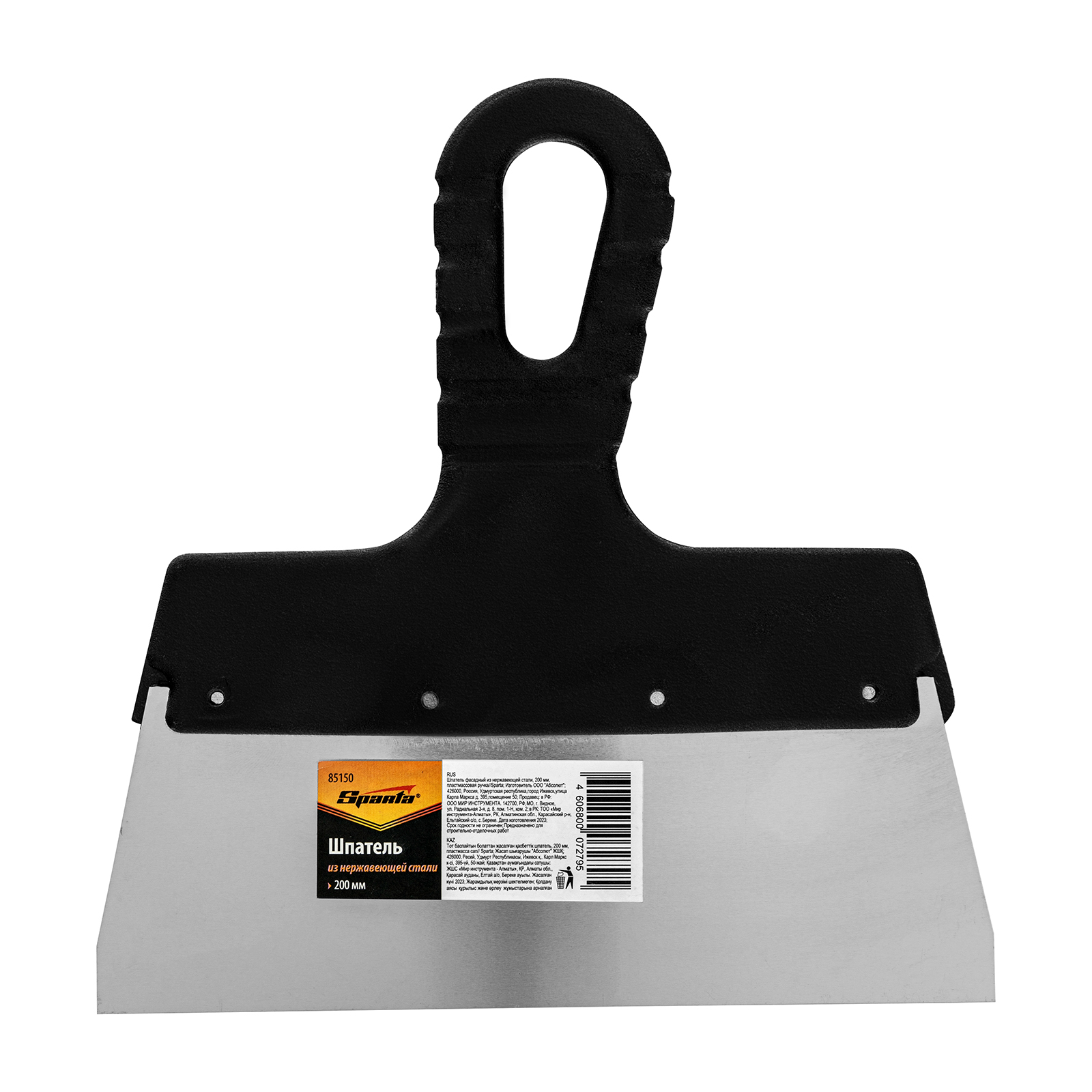 Шпатель фасадный из нержавеющей стали, 200 мм, пластмассовая ручка Sparta