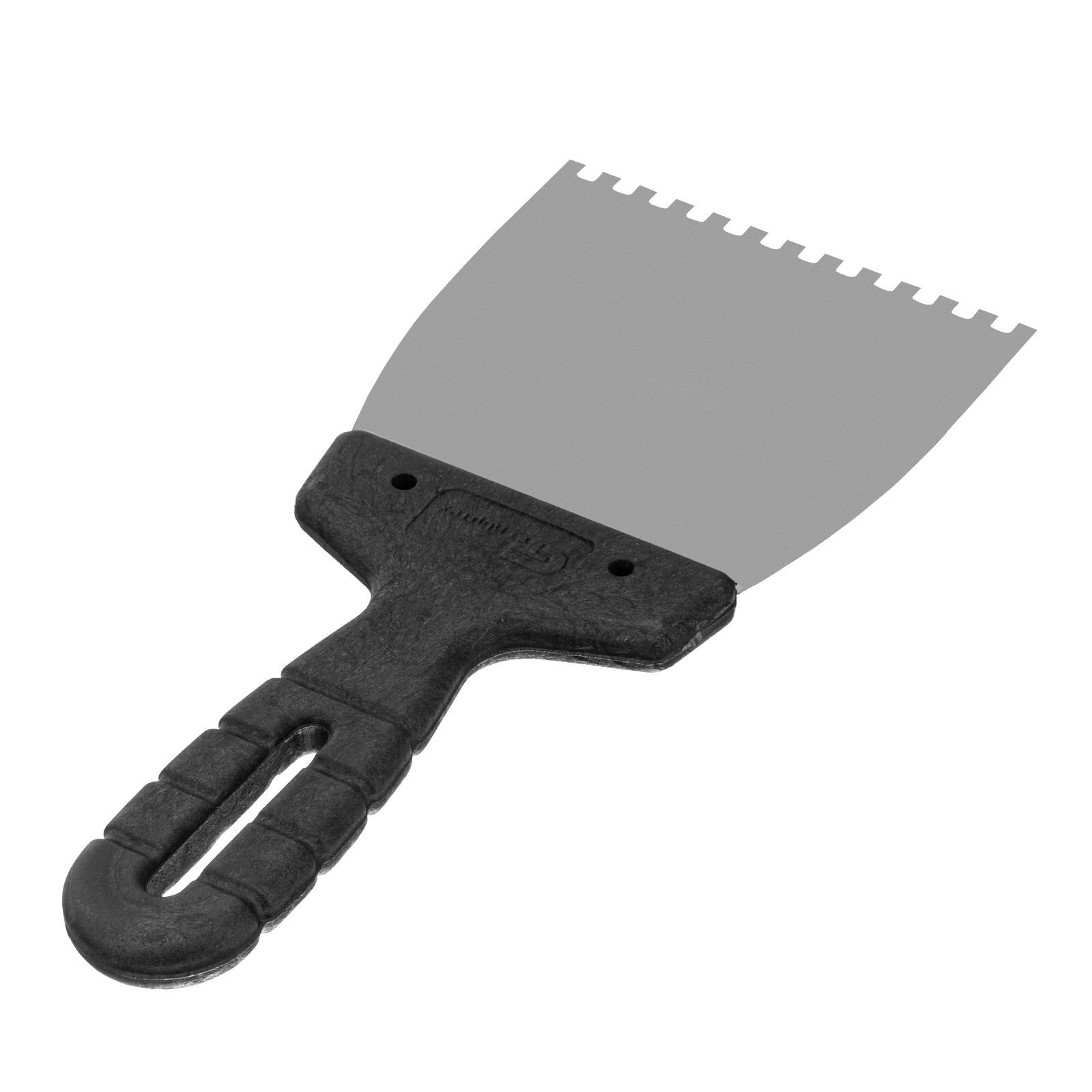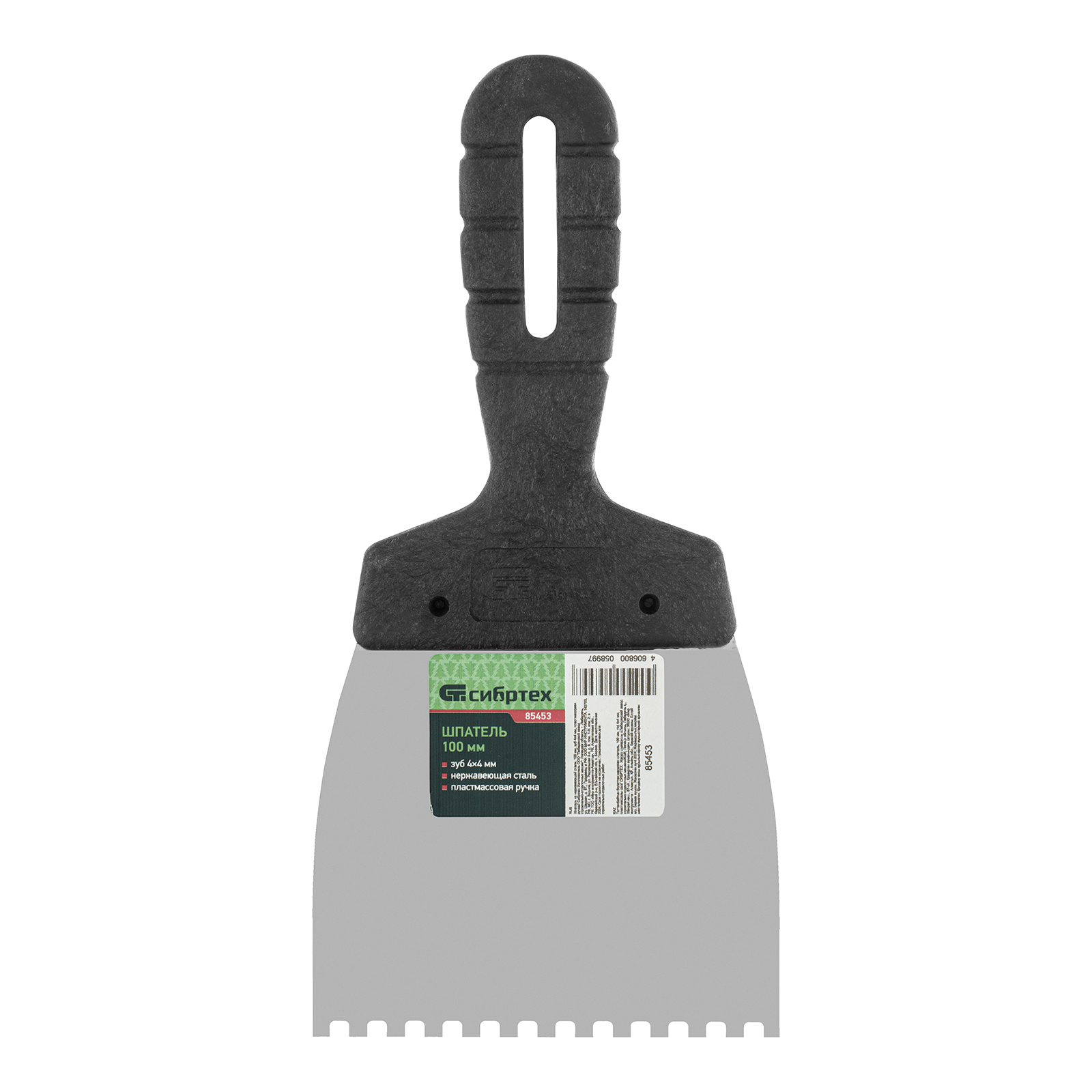Шпатель из нержавеющей стали, 100 мм, зуб 4 х 4 мм, пластмассовая ручка Сибртех