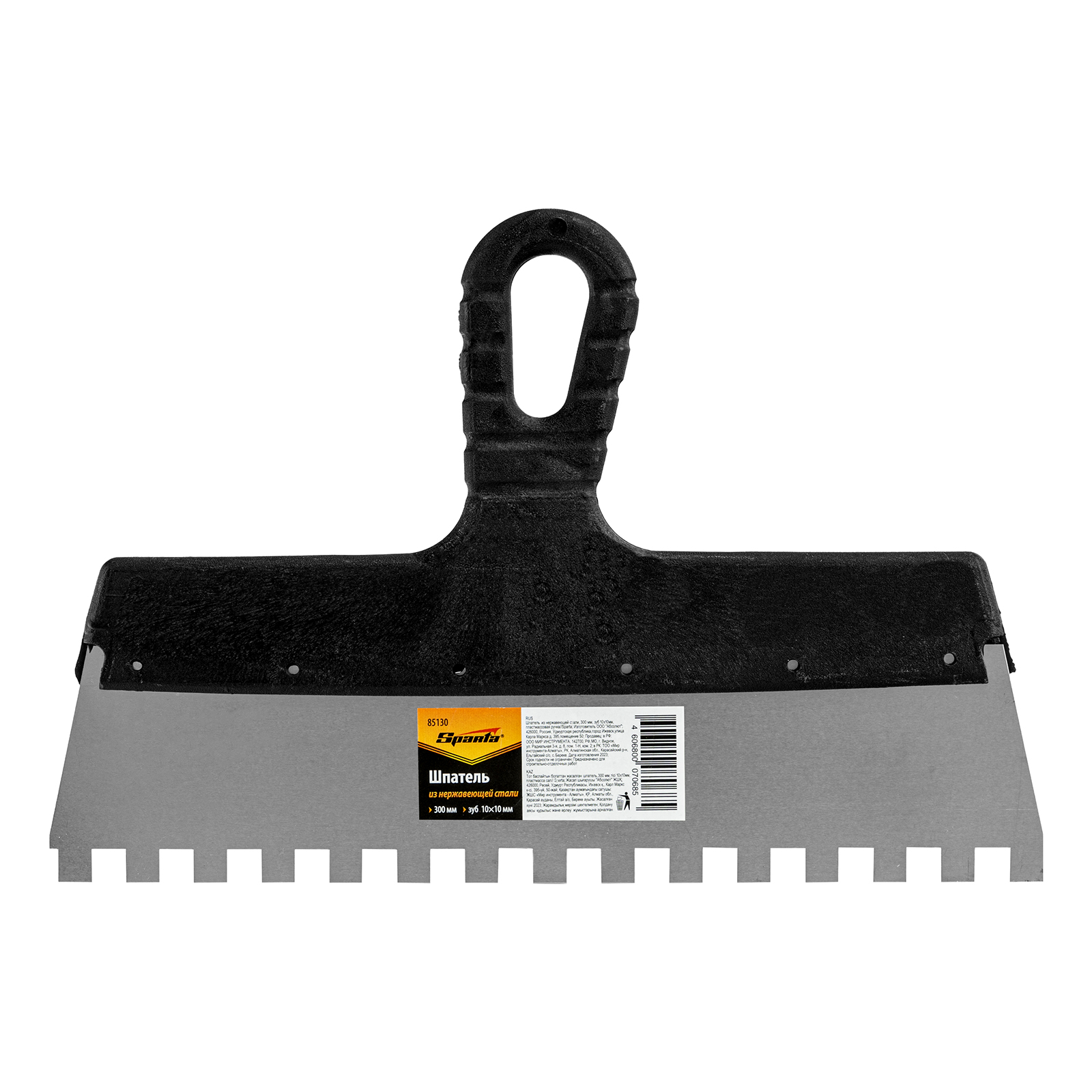 Шпатель из нержавеющей стали, 300 мм, зуб 10 х 10 мм, пластмассовая ручка Sparta