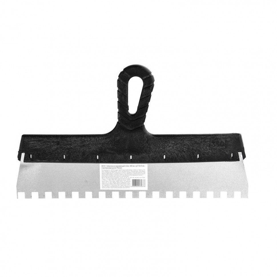 Шпатель из нержавеющей стали, 350 мм, зуб 10 х 10 мм, пластмассовая ручка Sparta