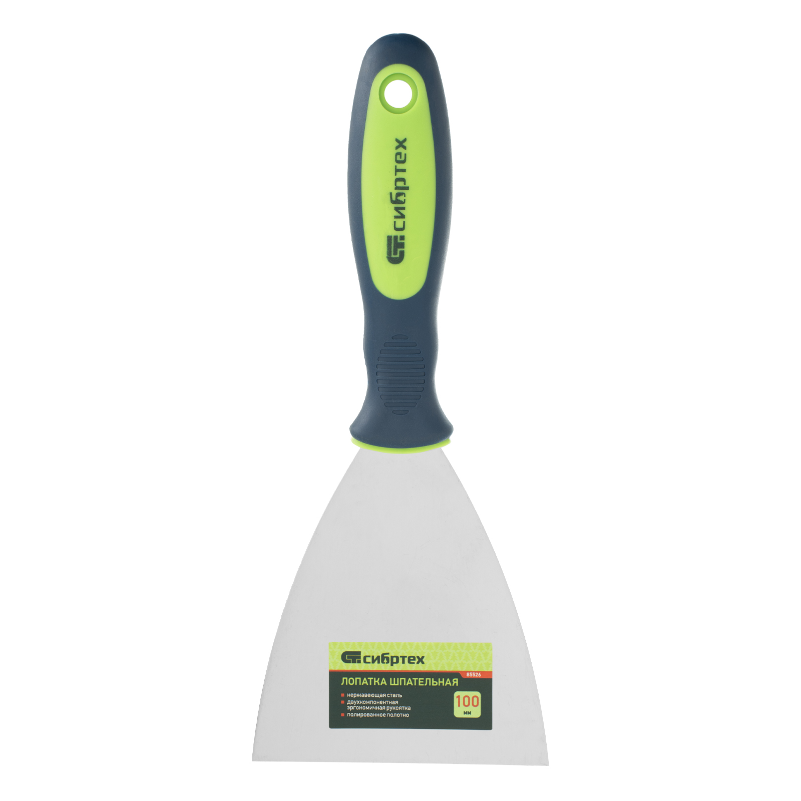 Шпательная лопатка из нержавеющей стали, 100 мм, двухкомпонентная ручка Сибртех
