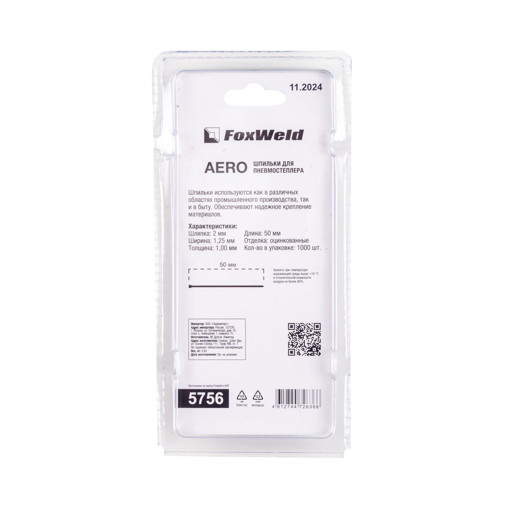 Шпильки для пневмостеплера тип 18GA F50, 1,0 х 50 мм 1000 шт. AERO в Казани