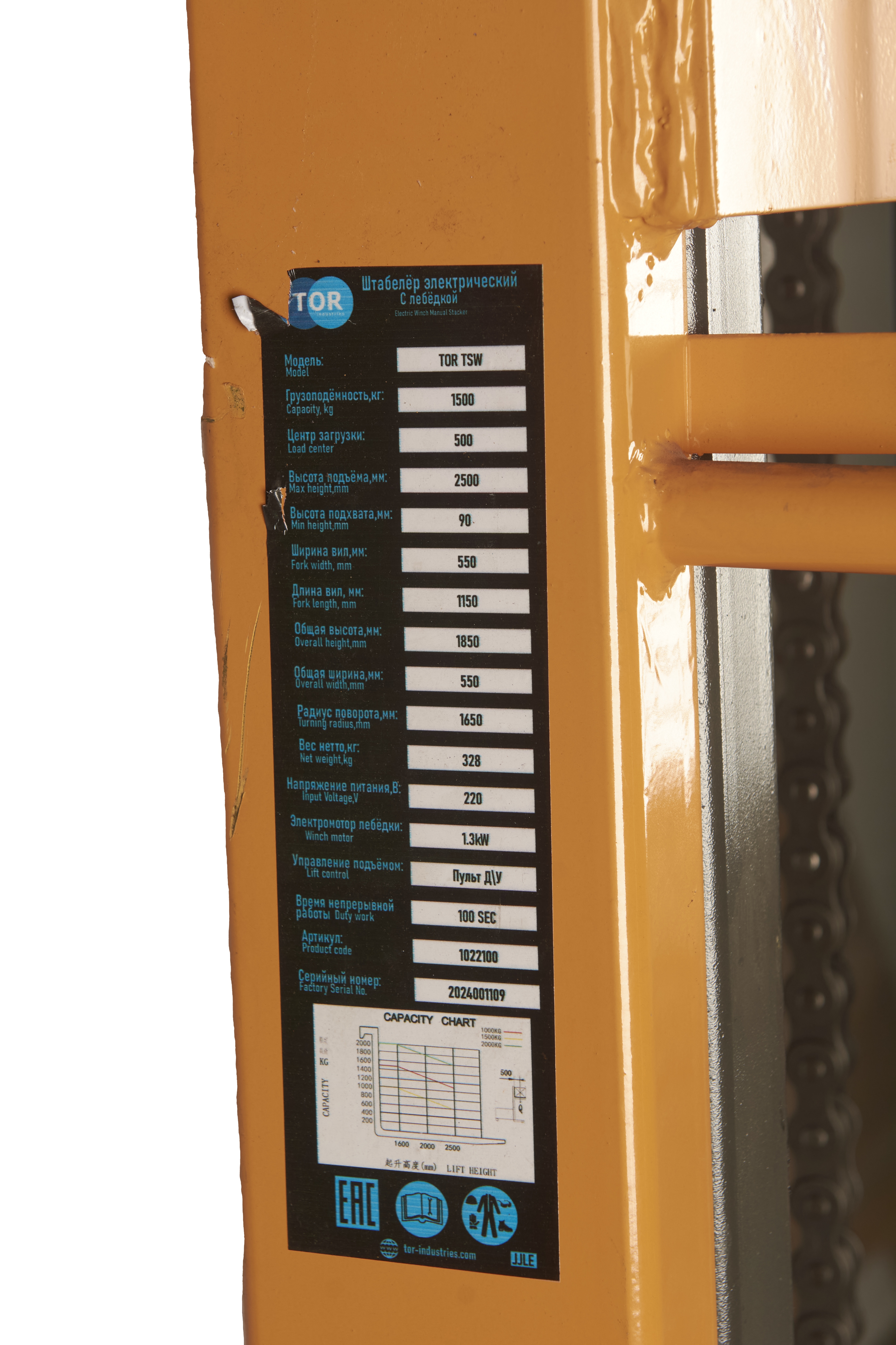 Штабелер с электроподъемом 1,5 т 1,6 м TOR TSW с лебедкой и пультом