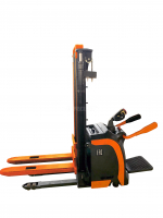 Самоходный штабелер оснащен электрогидравлическим приводом мощностью 2,2 кВт и работает от тягового аккумулятора емкостью 210 А/ч. Данная модель имеет вилочный захват, предназначенный для подъема и опускания грузов, со стандартной шириной 570мм (на заказ возможна поставка штабелера под финский паллет с шириной вил 680 мм). Грузоподъемность электроштабелера SHED 15/45М составляет 1,5 тонны, а максимальная высота подъема 4,5 метра. Подъем на эту высоту обеспечивается тройной выдвижной мачтой и двумя боковыми гидроцилиндрами..