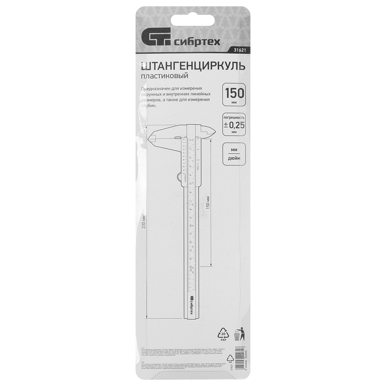 Штангенциркуль пластиковый, 150 мм Сибртех в Казани