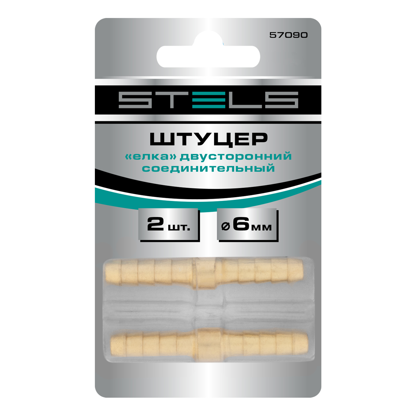 Двусторонний соединительный штуцер Stels 57090 типа «елка», 2 шт. в упаковке, предназначен для соединения пневматических шлангов диаметром 6 мм. Используется для монтажа пневмолиний и работы с пневмоинструментом.
