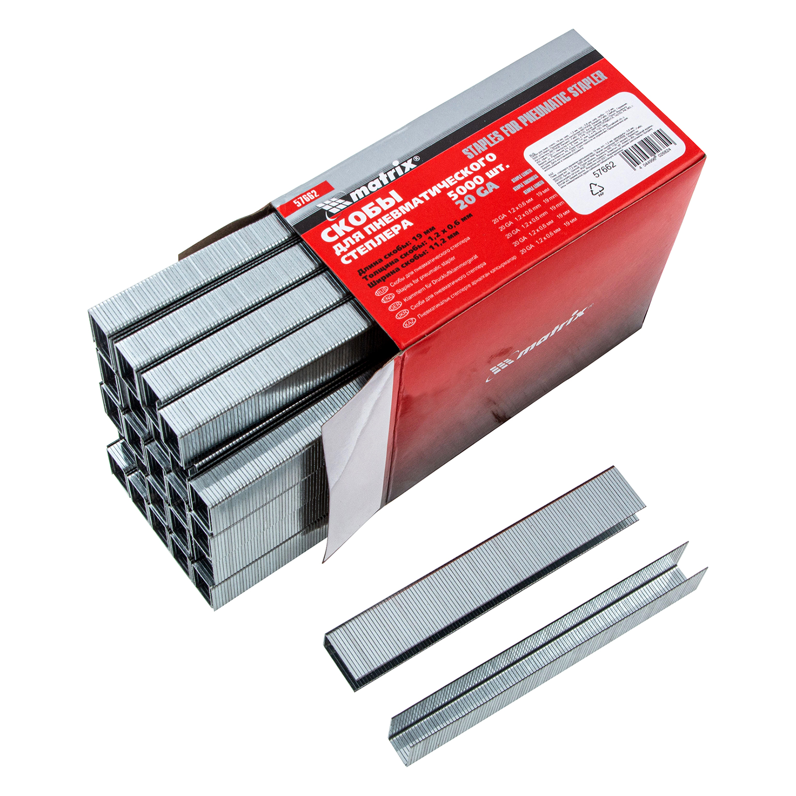 Скобы для пневматического степлера, 19 мм, ширина 1.2 мм, толщина 0.6 мм, ширина скобы 11.2 мм, 5000 шт Matrix