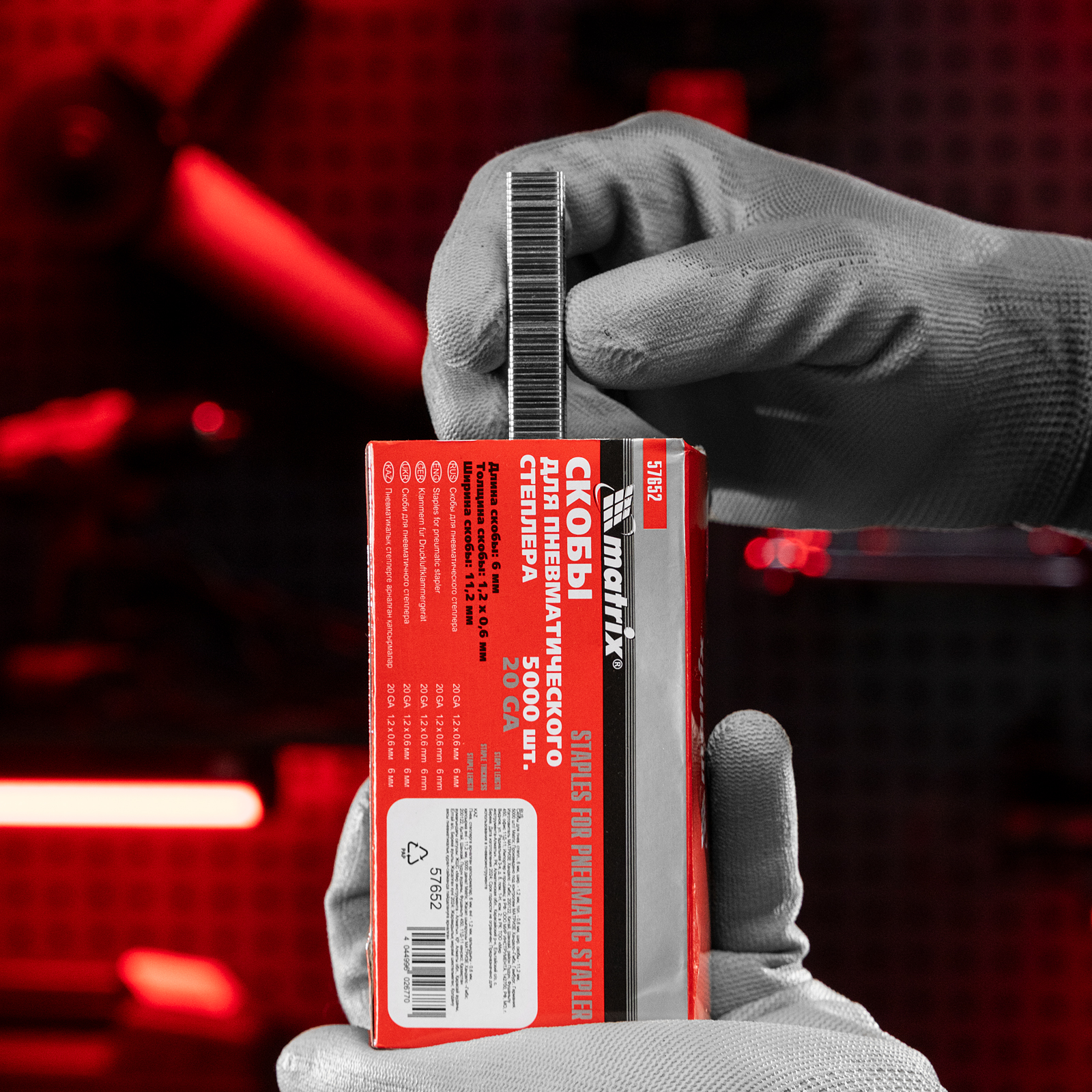Скобы для пневматического степлера, 6 мм, ширина 1.2 мм, толщина 0.6 мм, ширина скобы 11.2 мм, 5000 шт Matrix