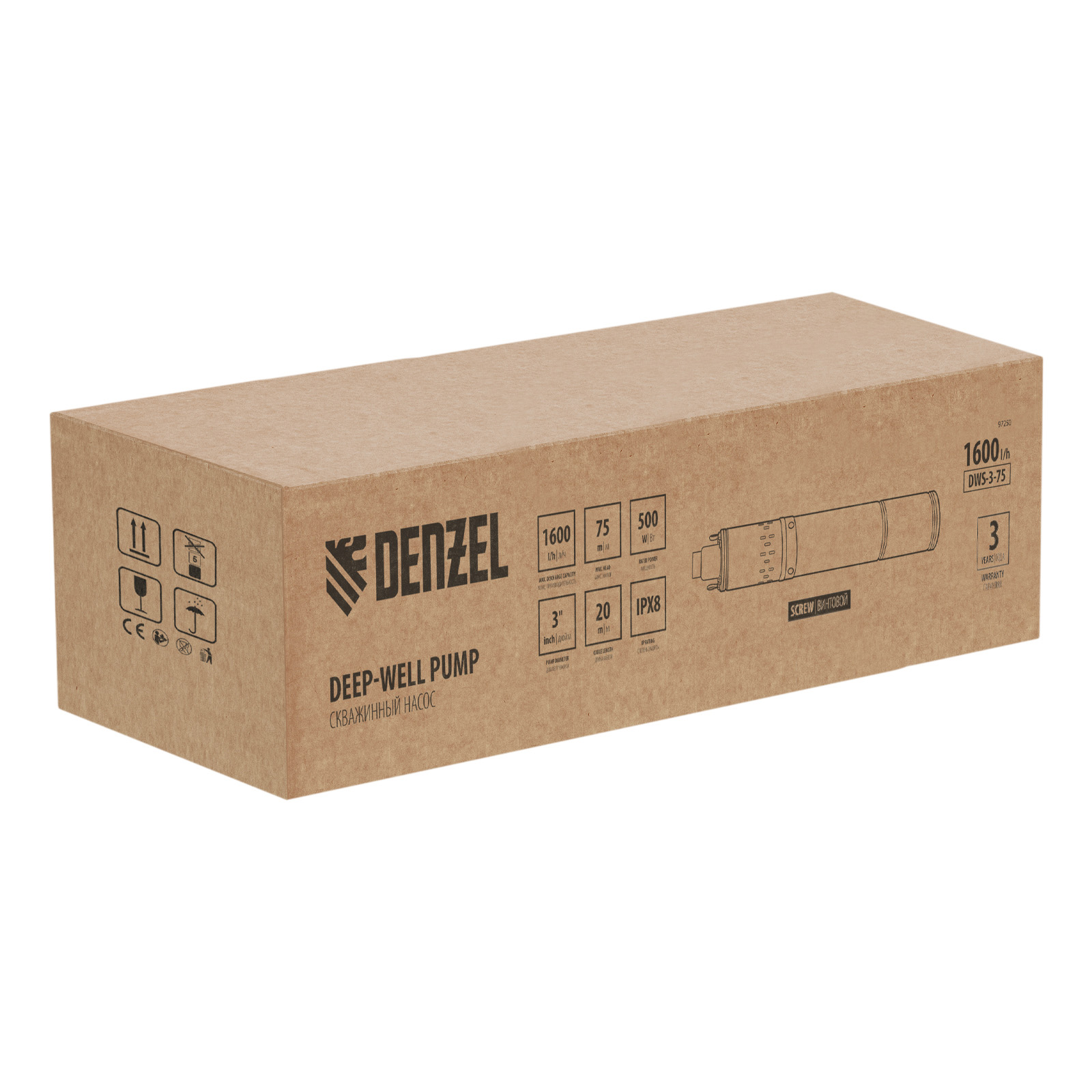 Скважинный насос DWS-3-75, винтовой, диаметр 3", 500 Вт, 1600 л/ч, напор 75 м Denzel