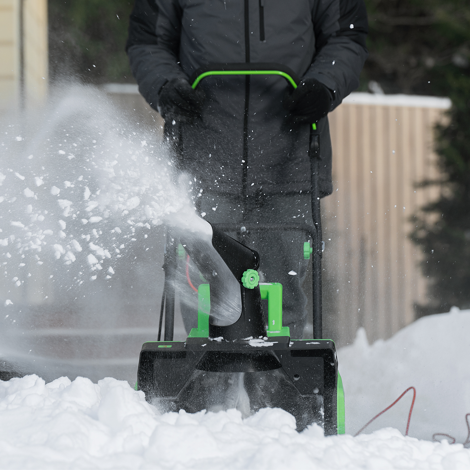 - Удобное хранение и транспортировка — благодаря складной рукоятке снегоуборщик не занимает много места.