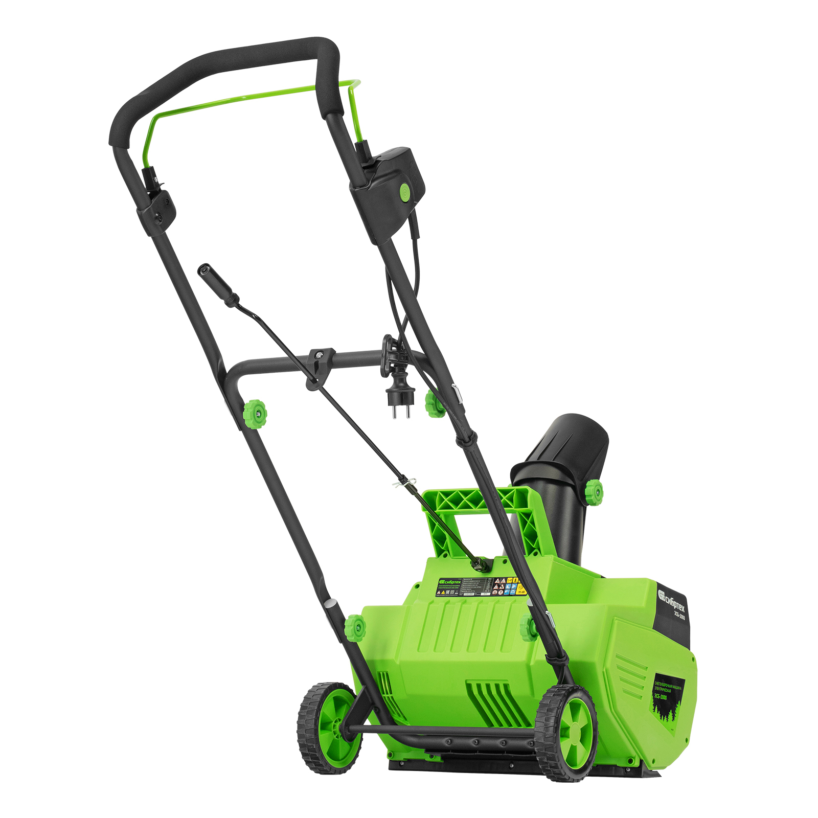 Электрическая снегоуборочная машина Сибртех ЭСБ-2000 97620 мощностью 2 кВт облегчит уборку территории после легкого снегопада. Работает от электрической сети, поэтому не производит шума и опасных выхлопов. Электродвигатель не требует сложного технического обслуживания.