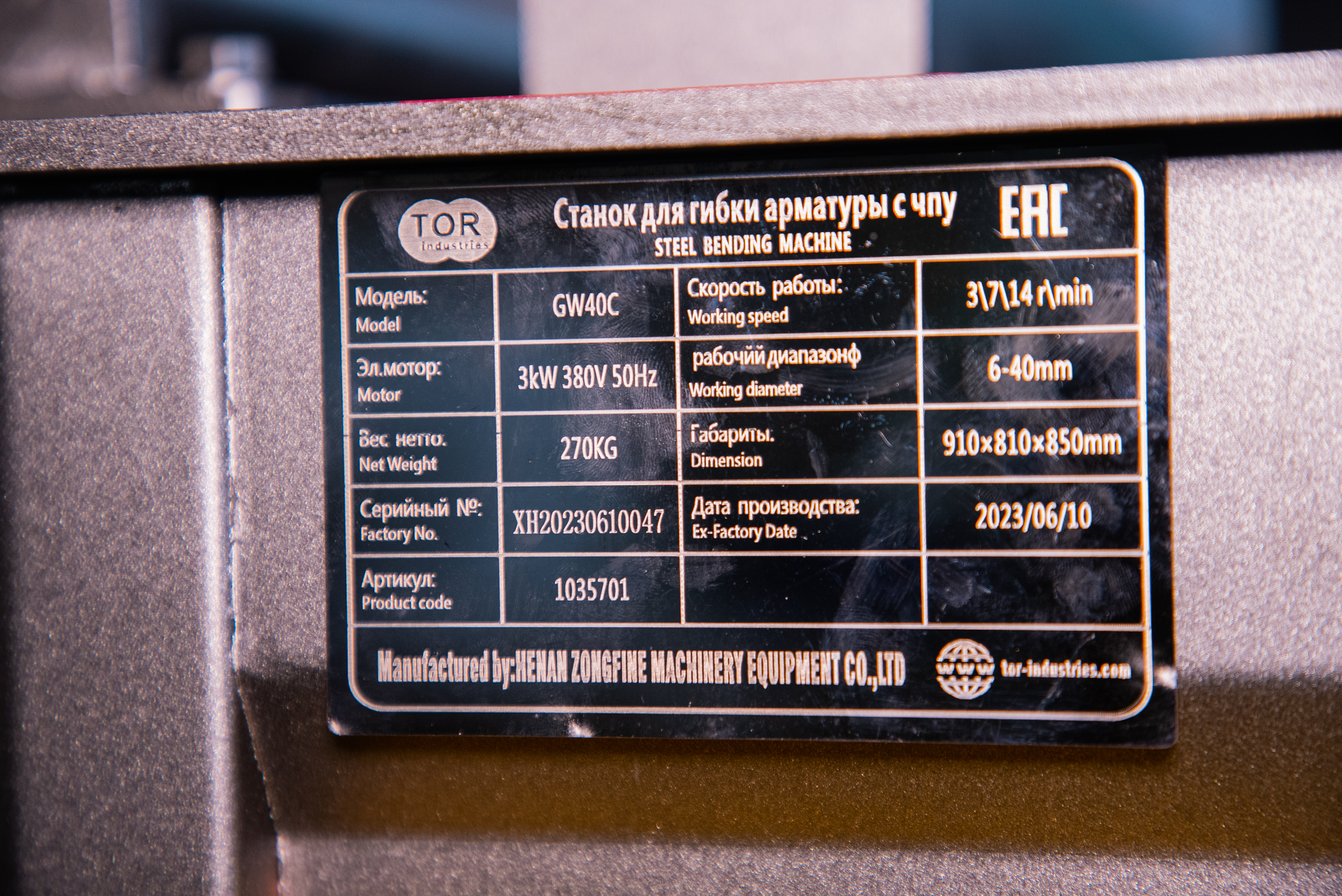 Станок для гибки арматуры 40/32мм 3кВт с ЧПУ TOR GW40С в Казани