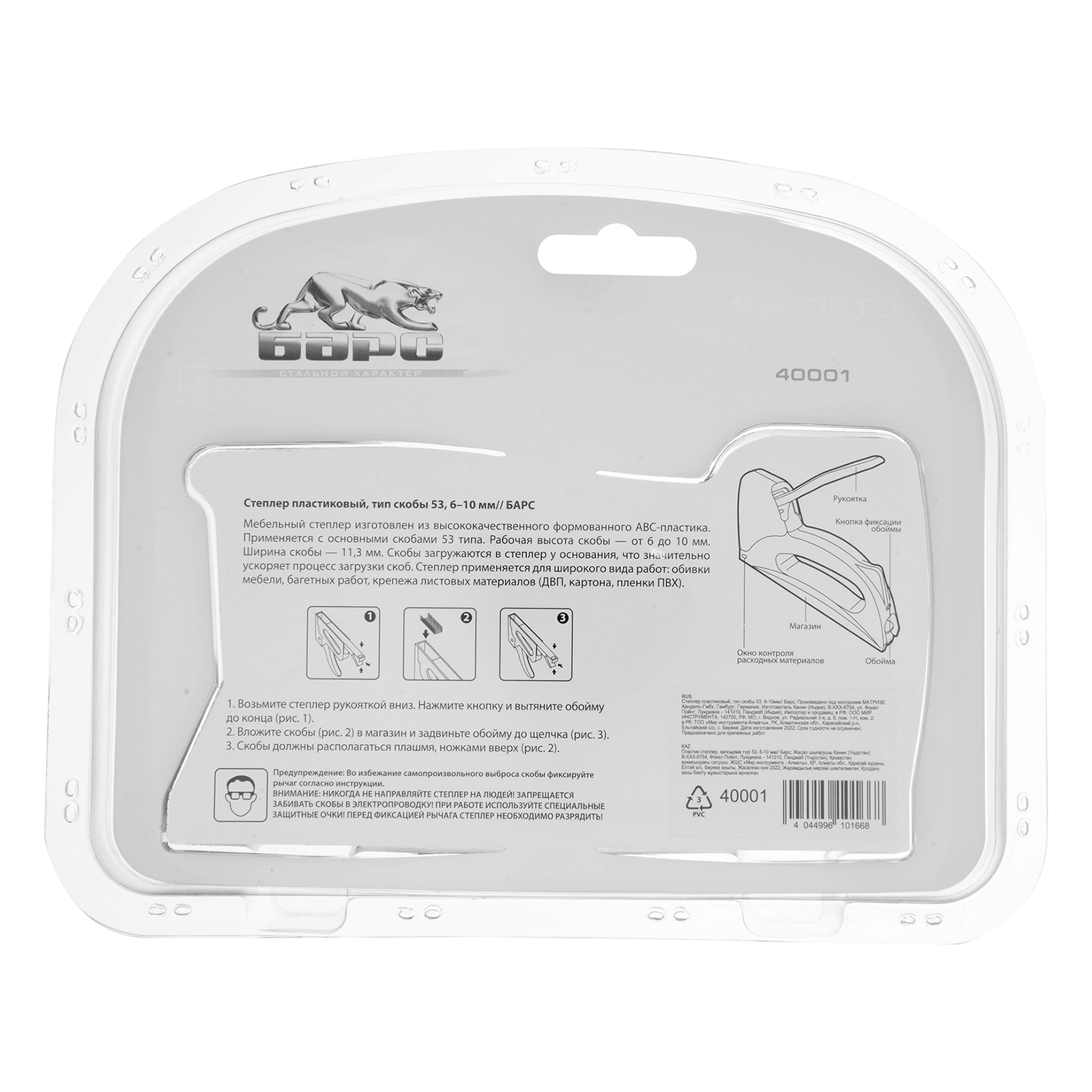 Степлер пластиковый, тип скобы: 53, 6-10 мм Барс