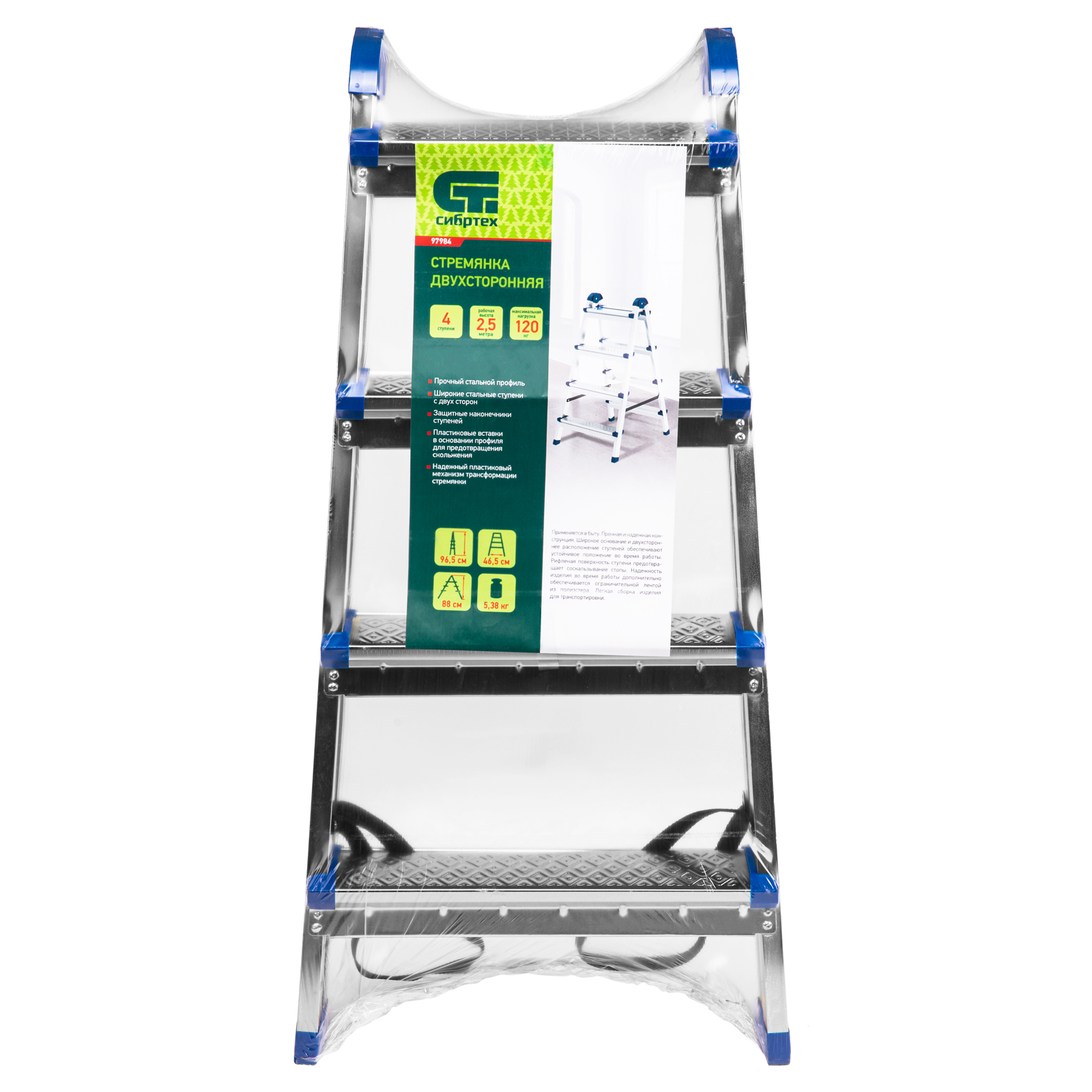 Стремянка двухсторонняя 4 ступени, сталь профиль, стальные ступени, Сибртех