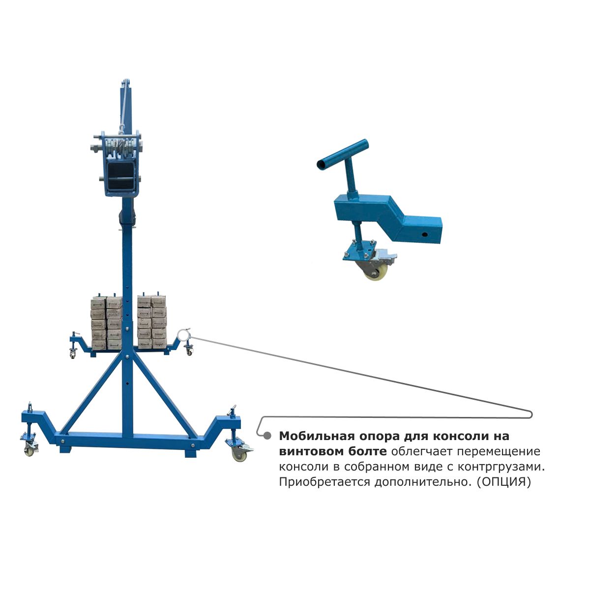 • Мобильная опора для консоли на винтовом болте облегчает перемещение консоли в собранном виде c контргрузами. Приобретается дополнительно.