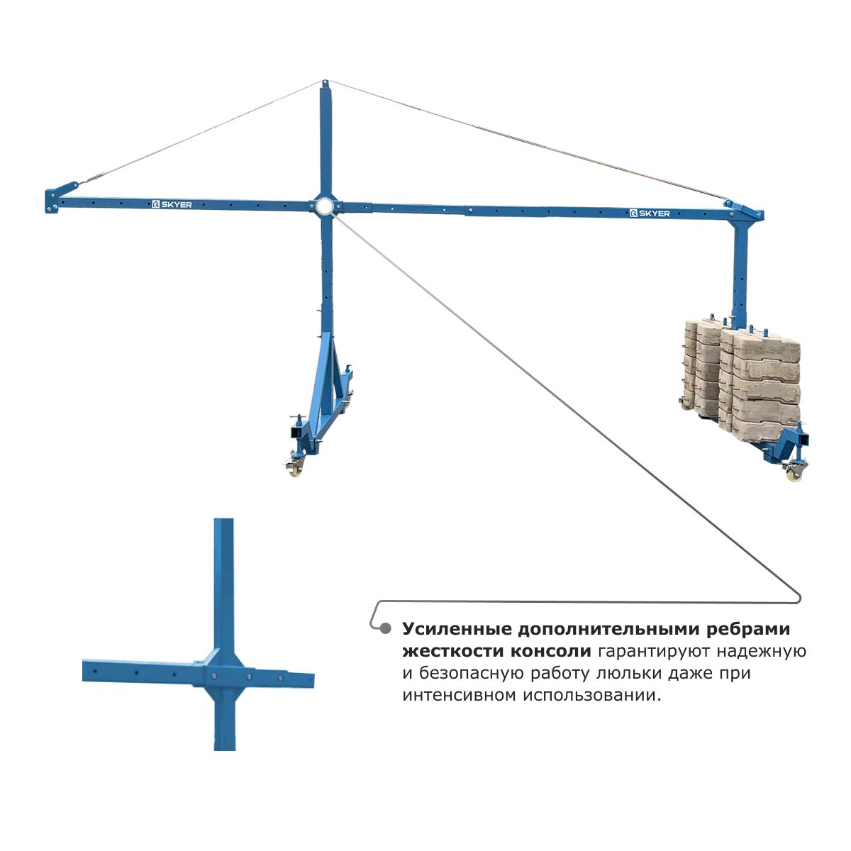 • Усиленные дополнительными ребрами жесткости консоли гарантируют надежную и безопасную работу люльки даже при интенсивном использовании.