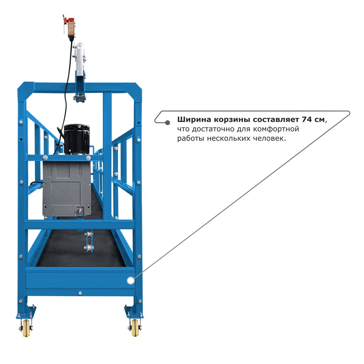 • Ширина корзины составляет 74 см, что достаточно для комфортной работы нескольких человек.