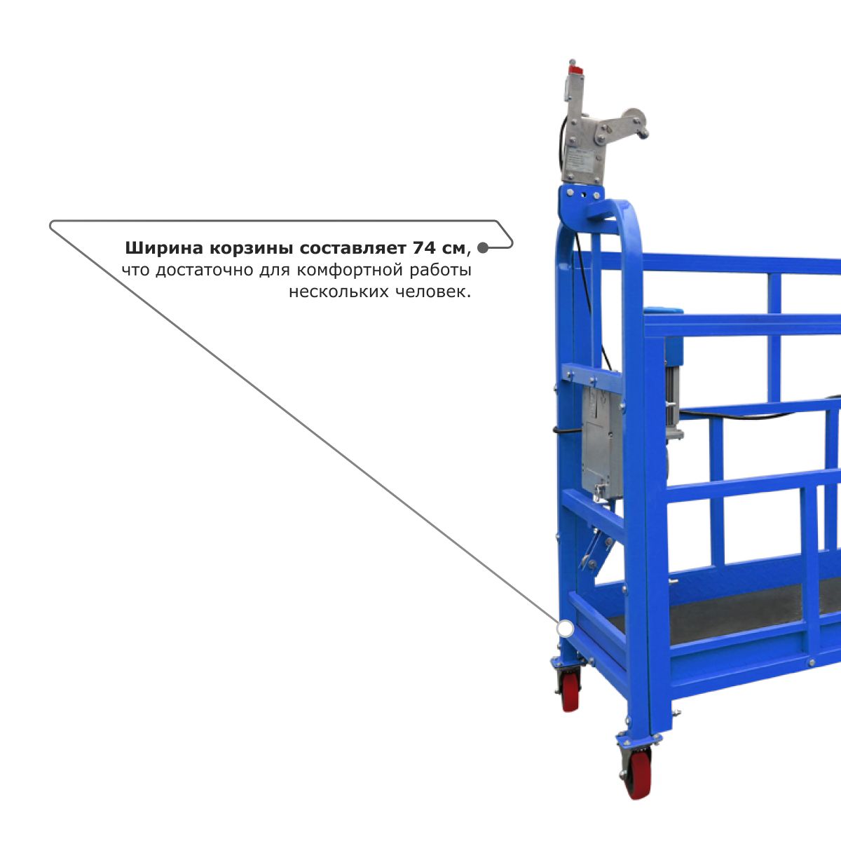 - Ширина корзины составляет 74 см, что достаточно для комфортной работы нескольких человек.
