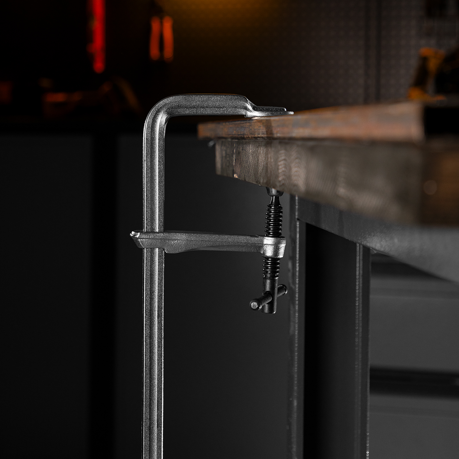 - Хромированное покрытие надежно защищает струбцину от коррозии.