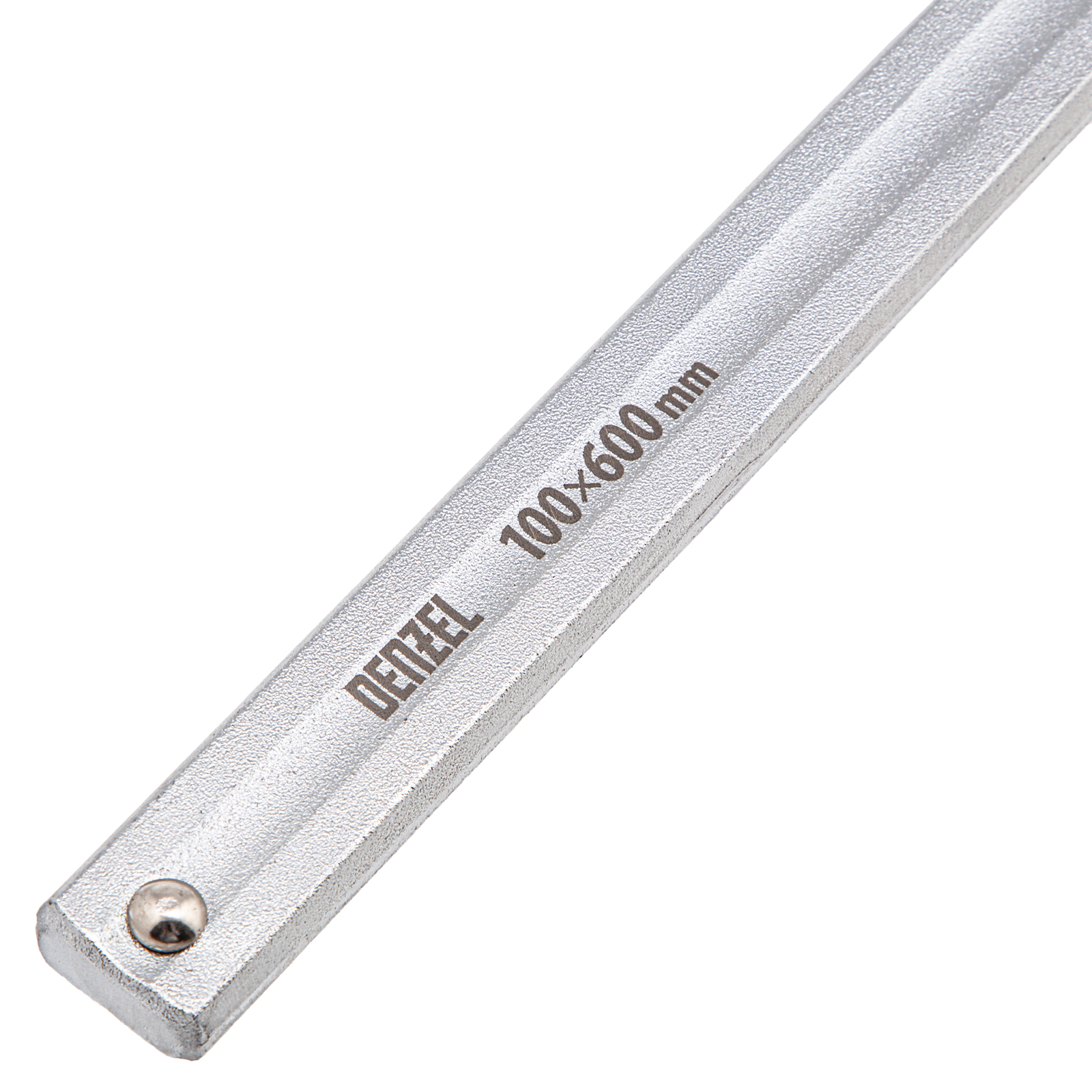 Кованая F-образная струбцина Denzel 20472 с глубиной зажима 100 мм, усиленная, предназначена для фиксации деталей шириной до 600 мм и материалов при проведении слесарных, столярных и сварочных работ. Тавровый профиль обеспечивает устойчивость конструкции к изгибу, что позволяет фиксировать детали со значительным усилием. Струбцина подходит для профессионального применения.