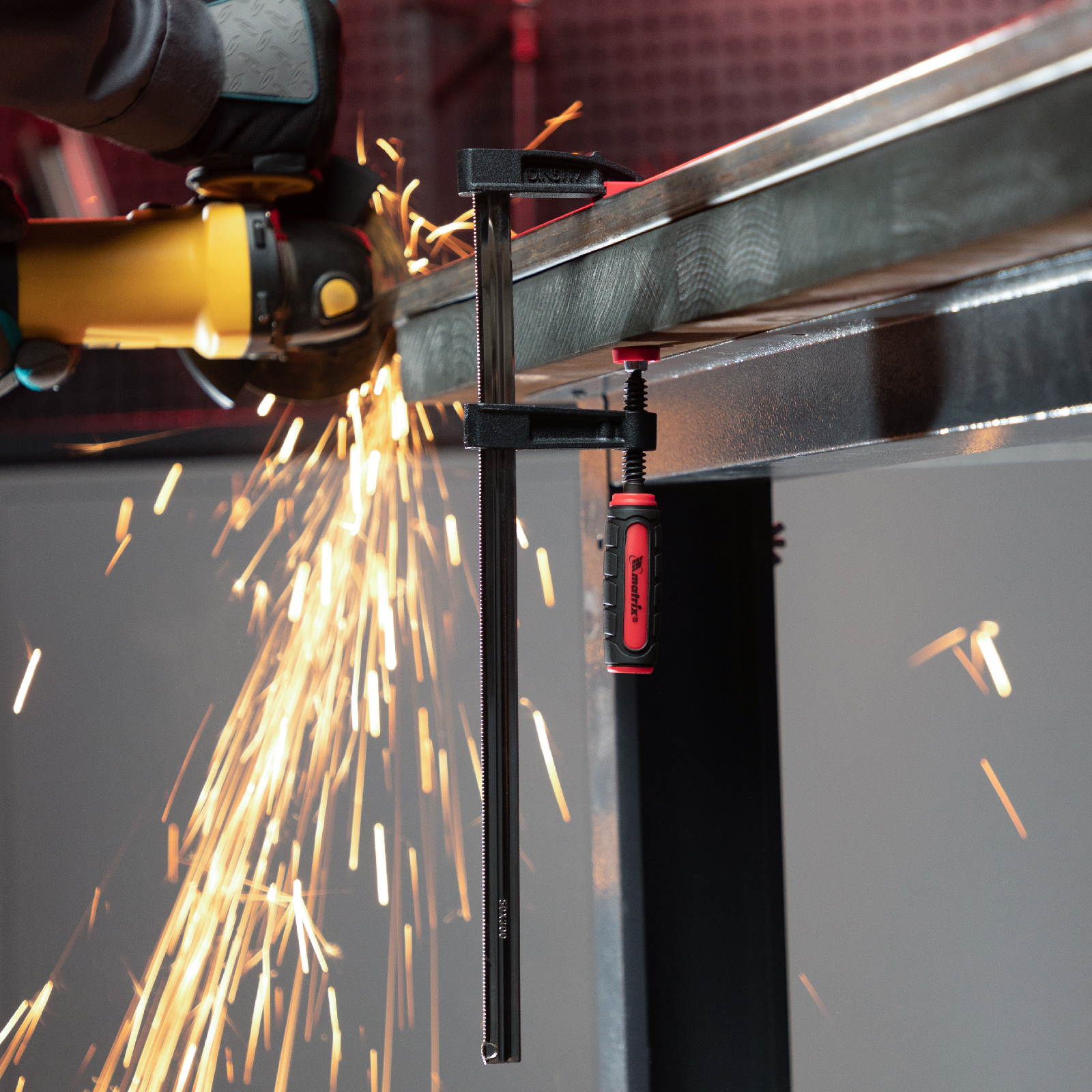 F-образная струбцина Matrix 20405 размером 300 х 50 х 370 мм используется для зажима металлических, деревянных и других заготовок для их последующей обработки или сборки. Представляет собой штангу, на которой установлено 2 кронштейна — неподвижный и подвижный. Деталь помещается между ними и прижимается к губкам при помощи винтового зажима с трапециевидной резьбой. Подвижный кронштейн позволяет регулировать величину захвата, которая может достигать 300 мм. Струбцину применяют для выполнения слесарных и столярных работ.