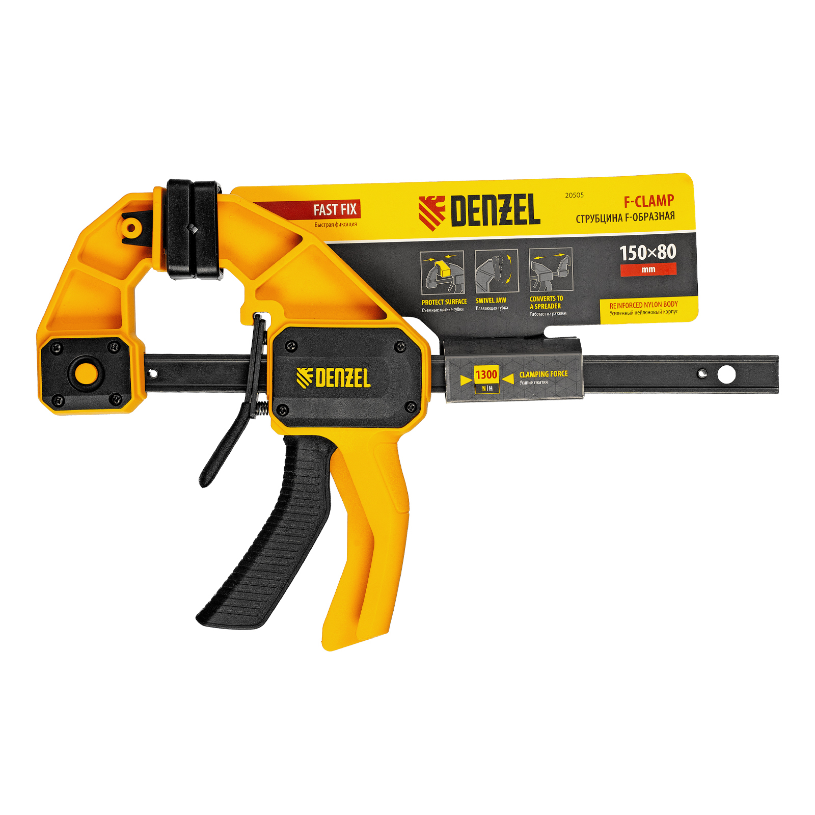 Струбцина F-образная, быстрозажимная, 150 х 80 мм, усиленный нейлоновый корпус Denzel