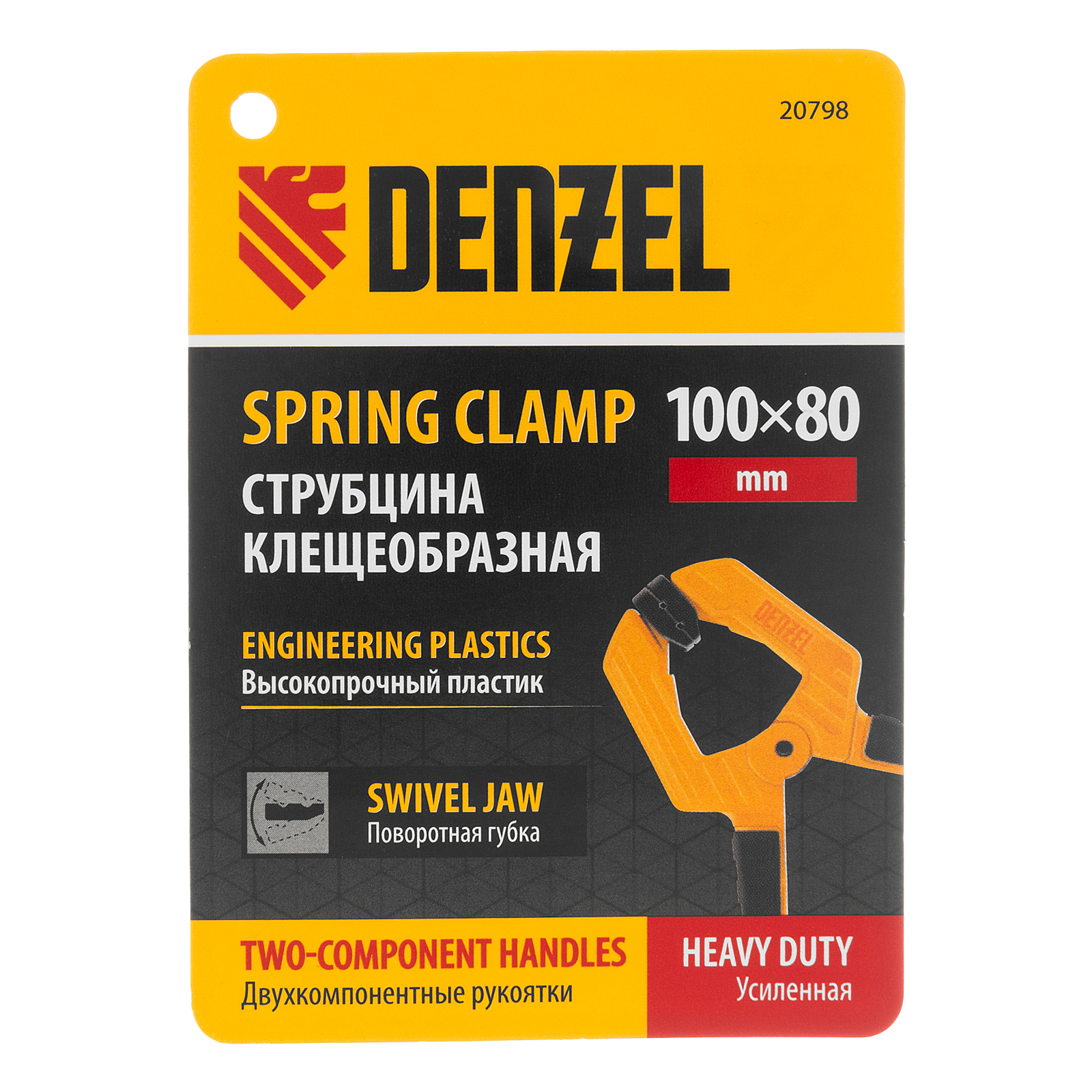 Струбцина клещеобразная, усиленная 100 х 80 мм, двухкомпонентные рукоятки Denzel в Казани