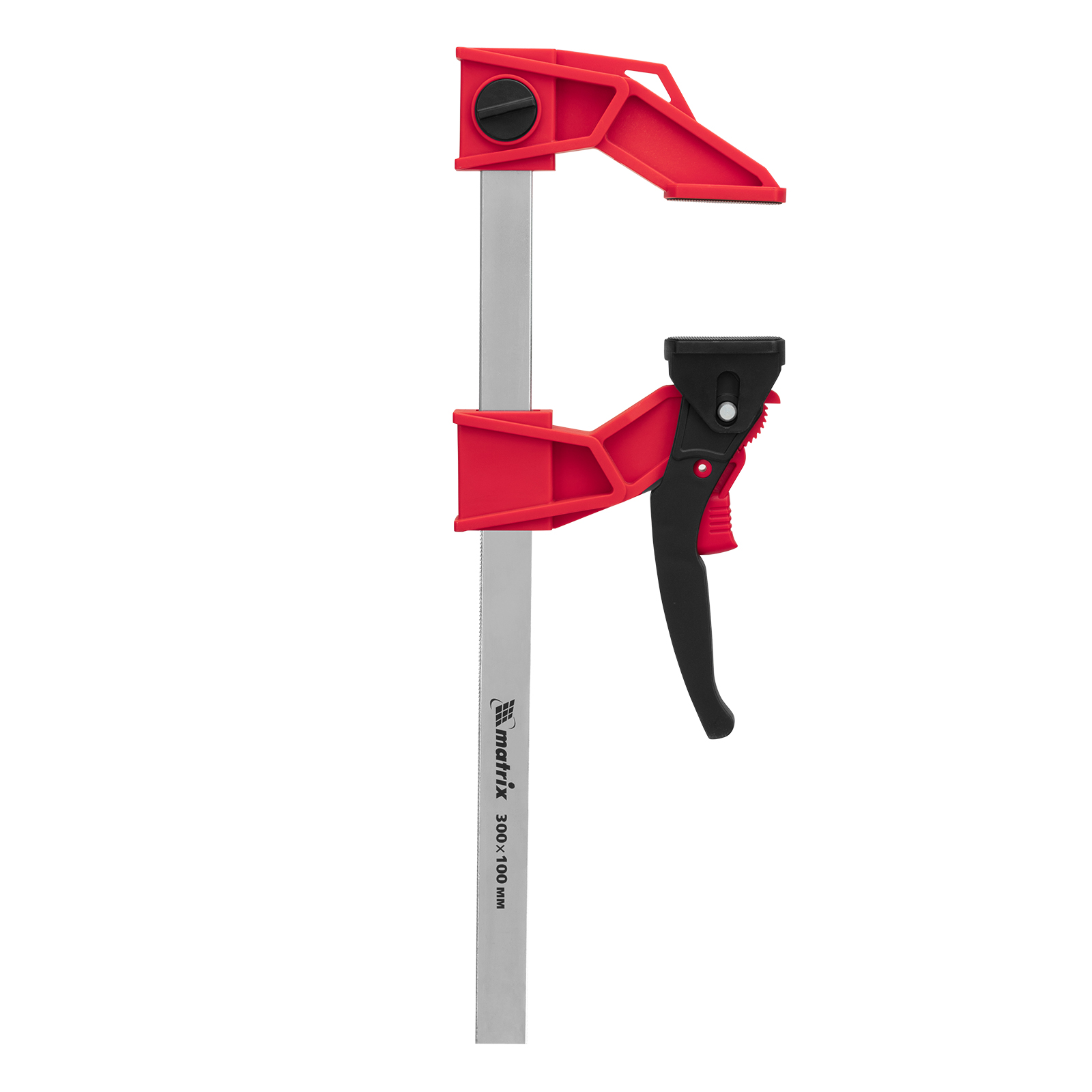 Струбцина реечная быстрозажимная, усиленная, пластиковый корпус рычажно-храповой механизм 300 х 100 х 456 мм, штанга 5 х 22 мм Matrix