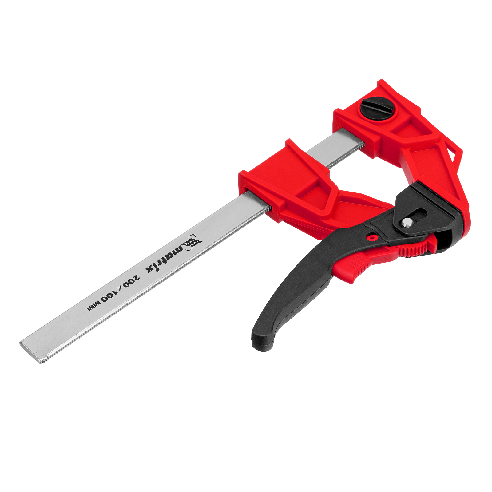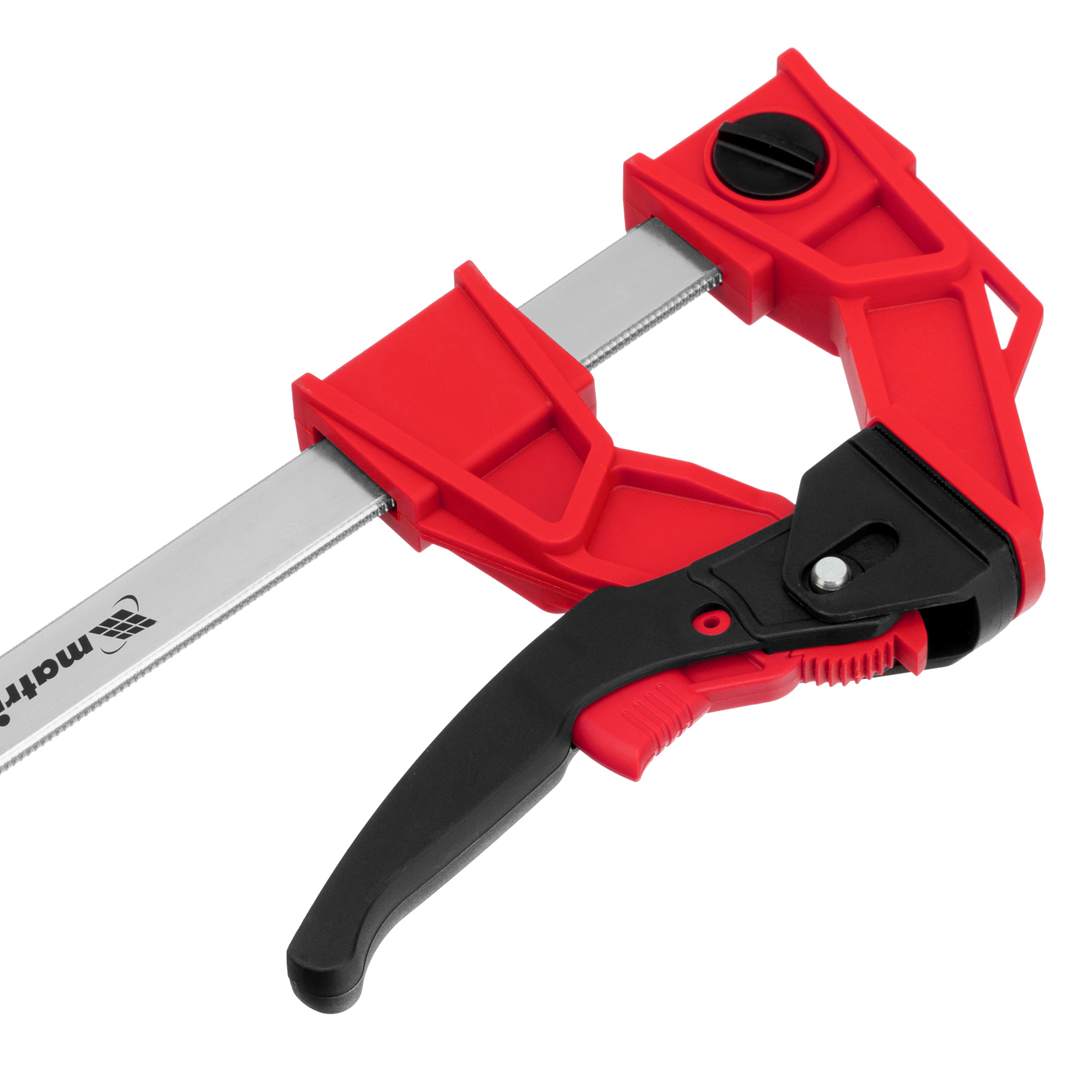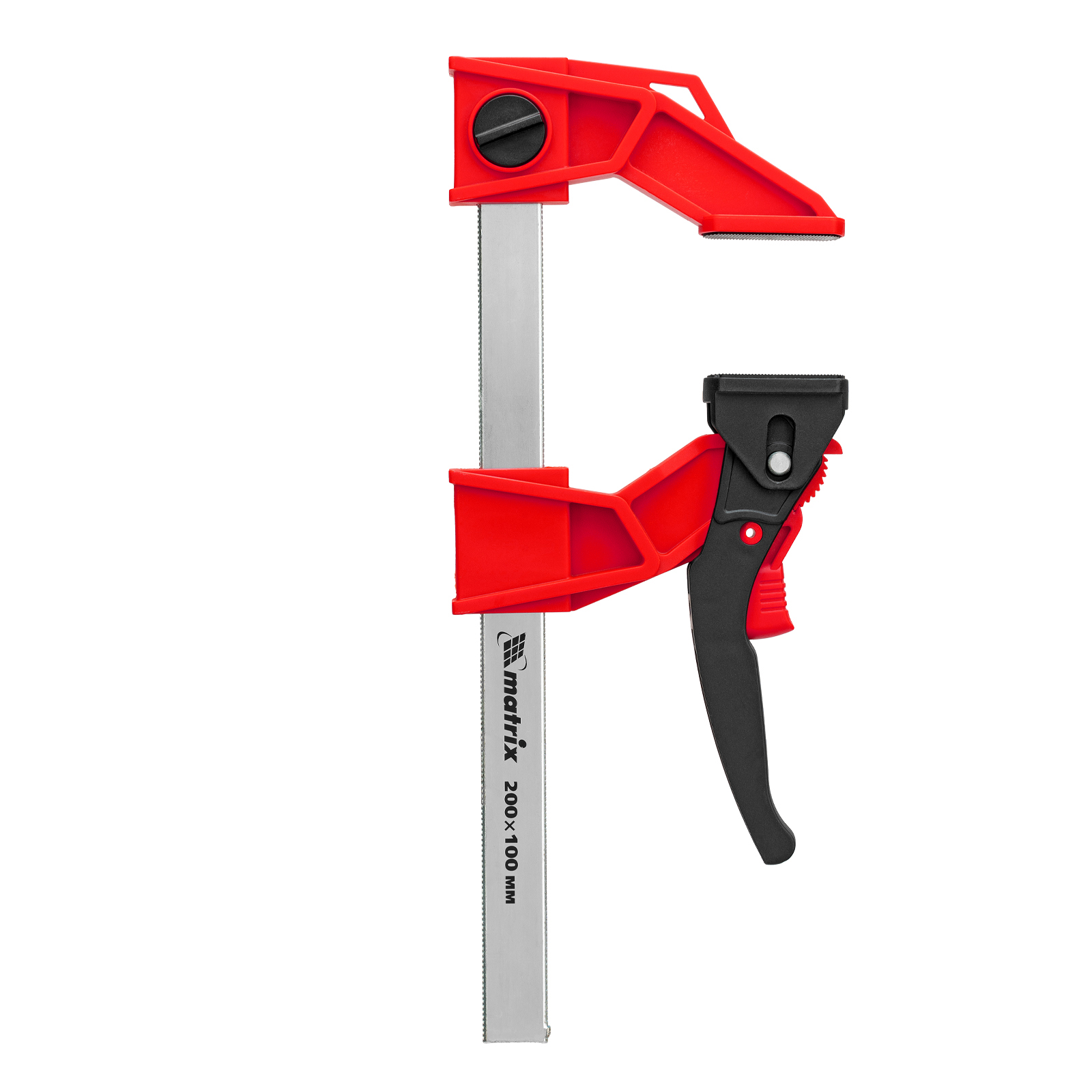 Струбцина реечная быстрозажимная, усиленная, пластиковый корпус рычажно-храповой механизм, 200 х 100 х 351 мм, штанга 5 х 22 мм Matrix