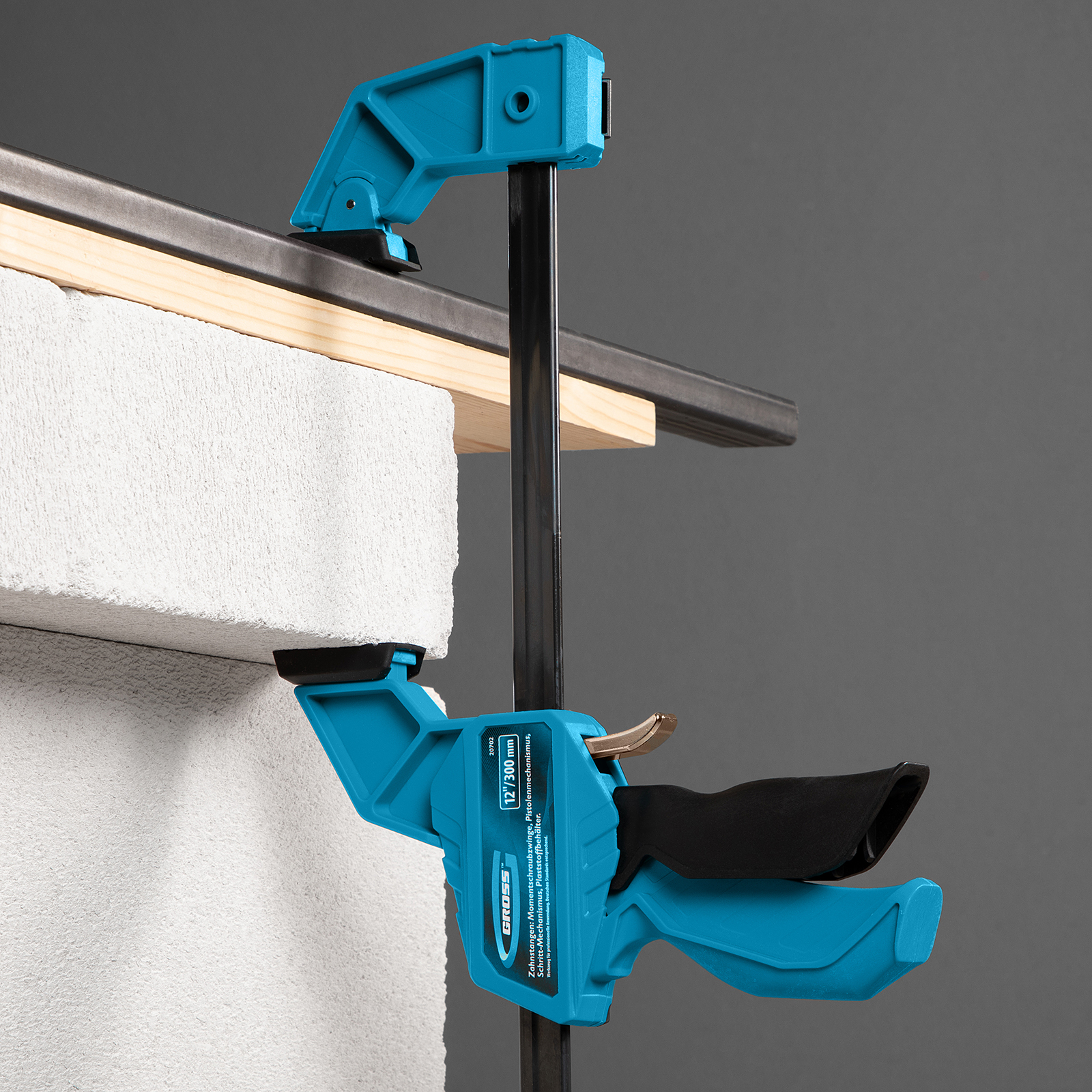 Струбцина реечная, быстрозажимная, пистолетного типа, пошаговый механизм, пластиковый корпус, 300 мм Gross