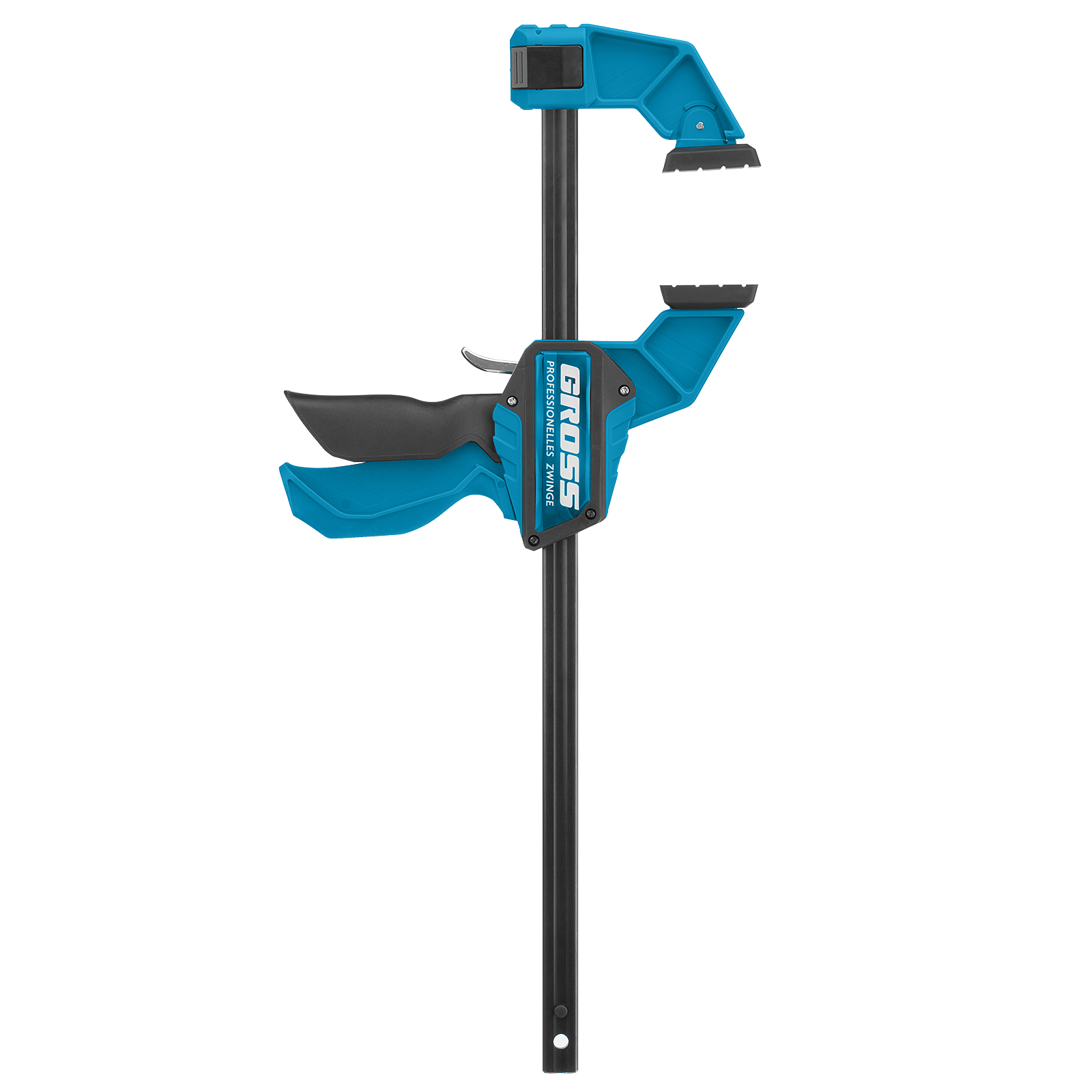 - Многофункциональность — опорную губку можно переставить на другой конец рейки, чтобы использовать струбцину как распорный инструмент.