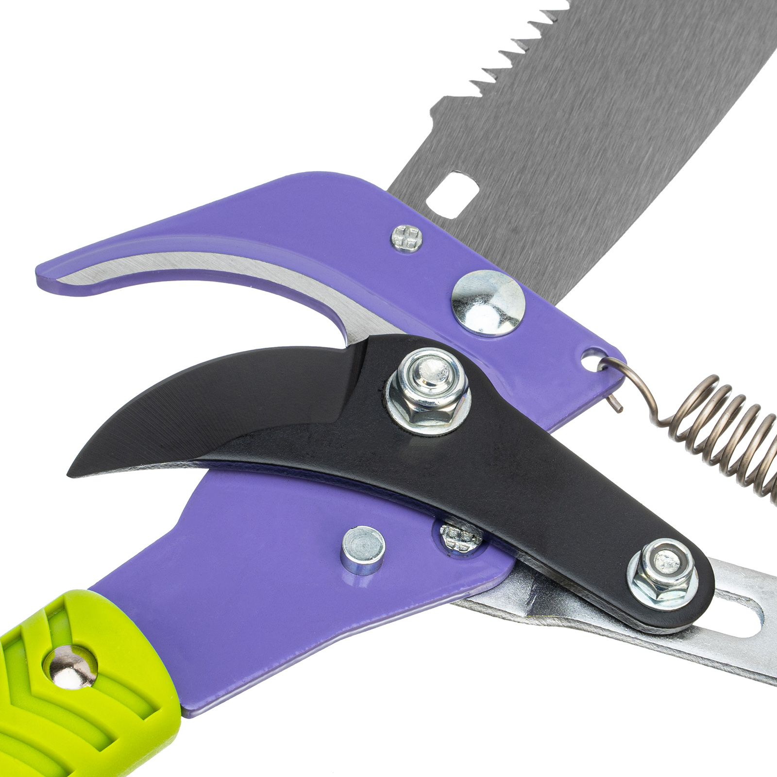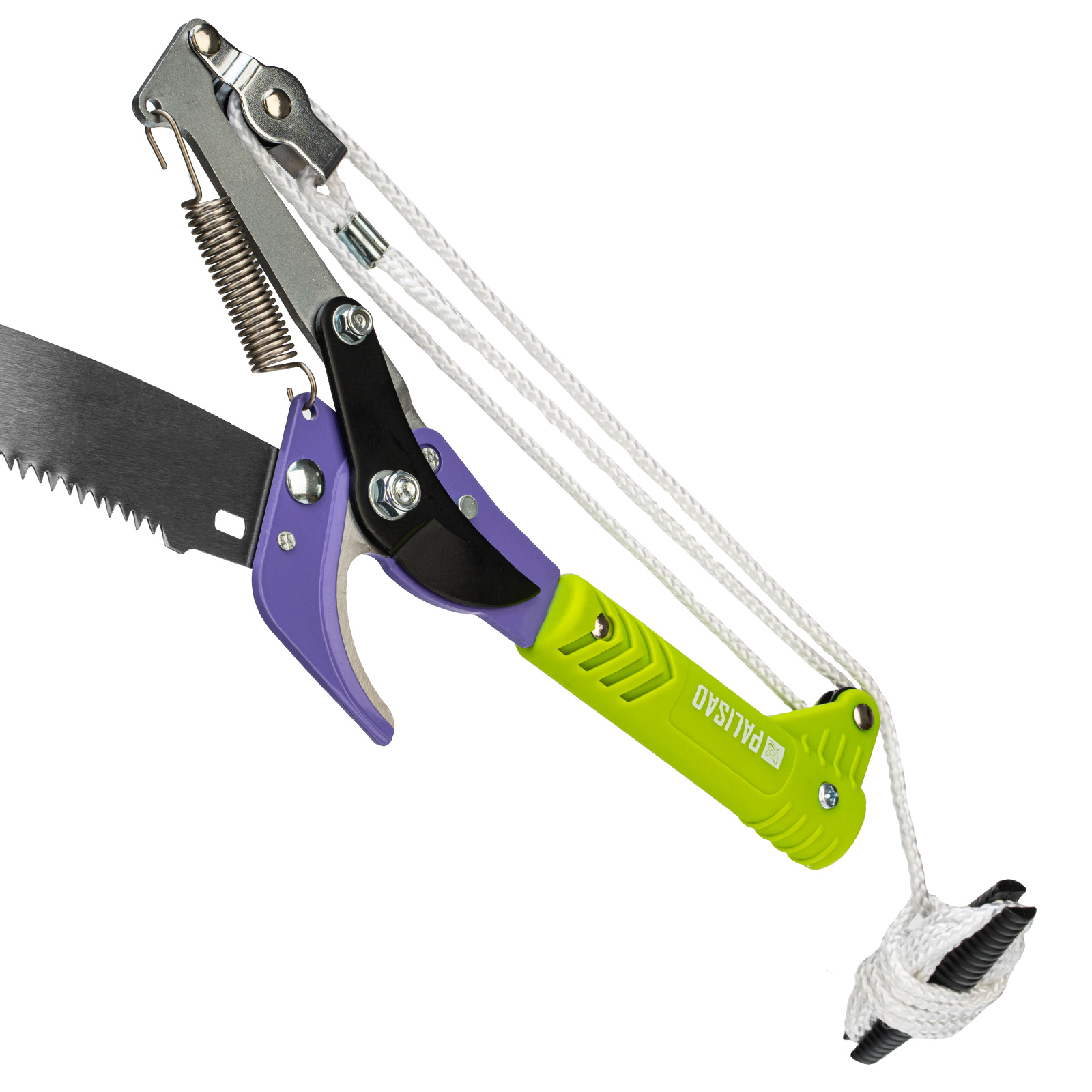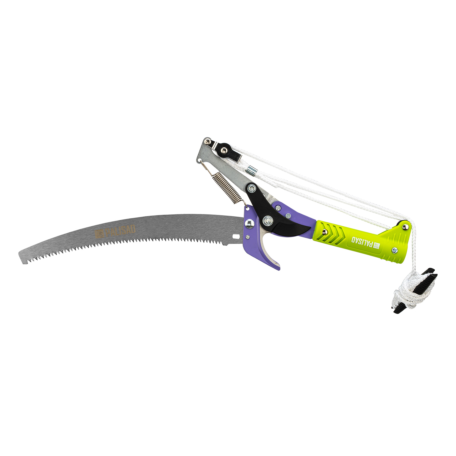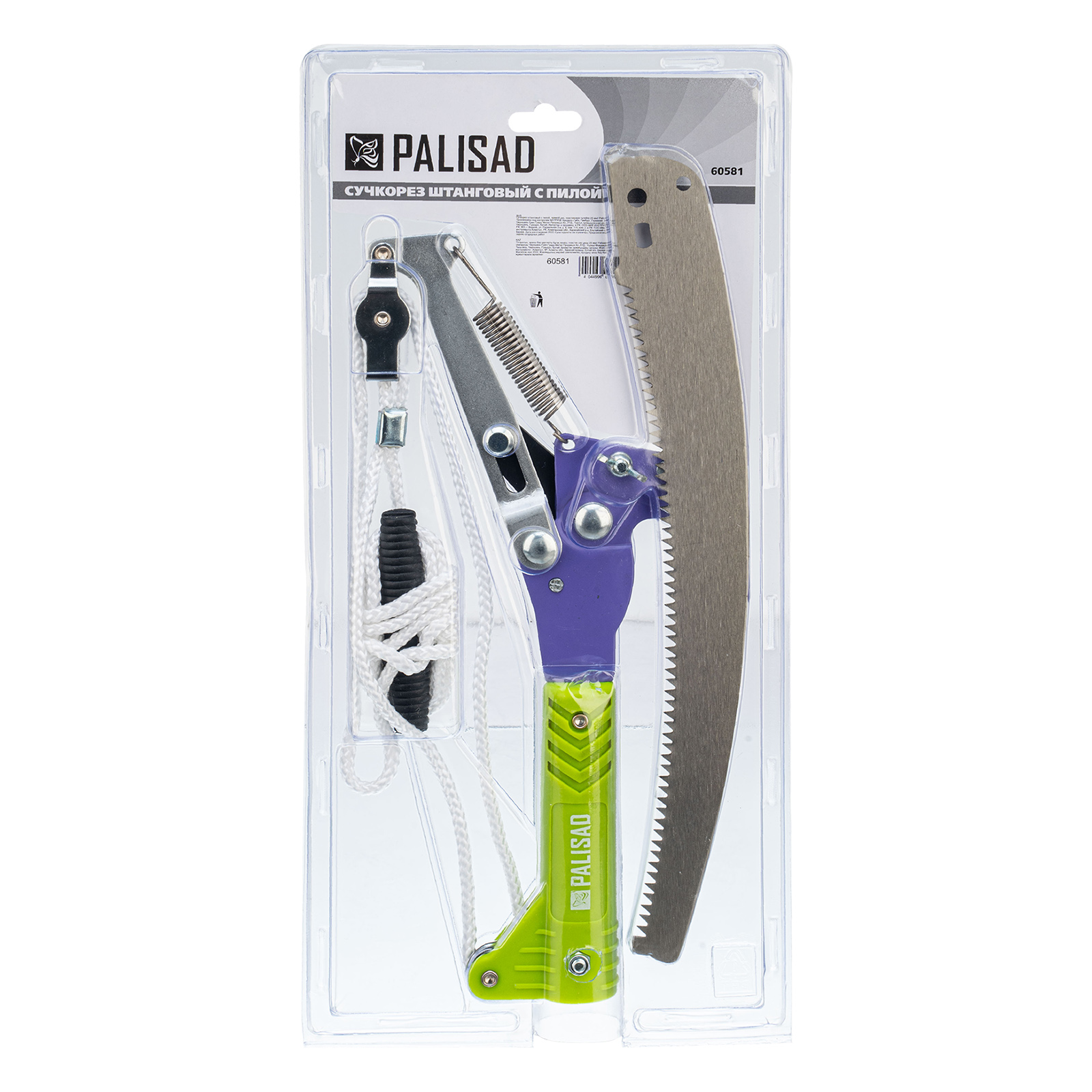 Штанговый сучкорез прямого реза Palisad 60581 с пилой и пластиковой тулейкой диаметром 25 мм способен срезать живые ветки толщиной до 20 мм. Выполнение этой задачи упрощает тефлоновое покрытие лезвия, уменьшающее трение о древесину. Более толстые ветви диаметром до 60 мм можно спилить пилой, которая предусмотрена в конструкции инструмента. Сучкорез с пилой необходимо установить на штангу или черенок (приобретается отдельно), чтобы обрезать ветки на высоких кронах. Инструмент пригодится владельцам загородных участков.