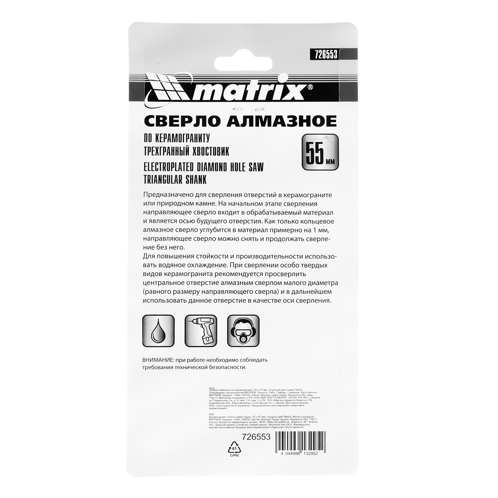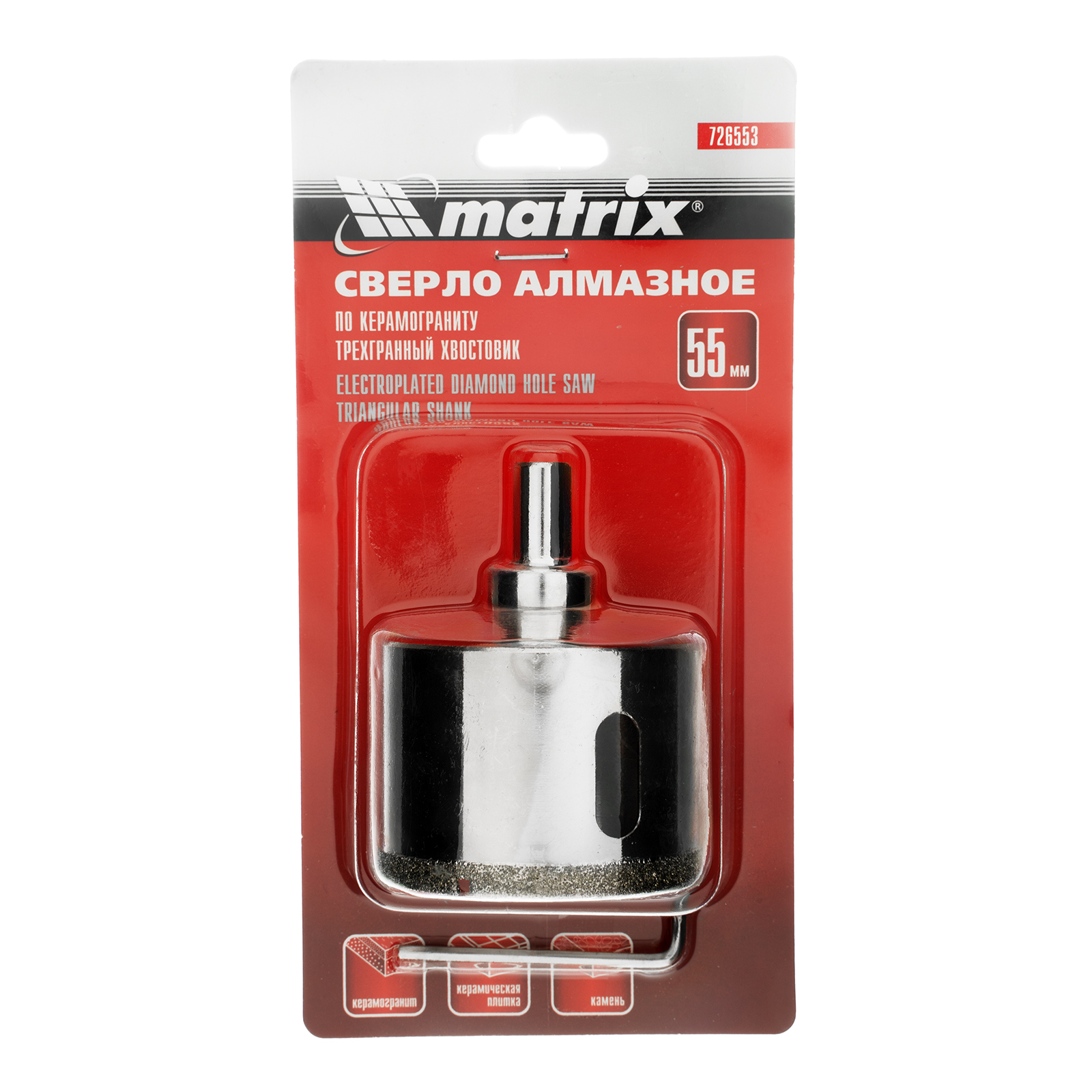Сверло алмазное по керамограниту, 55 х 67 мм, трехгранный хвостовик Matrix