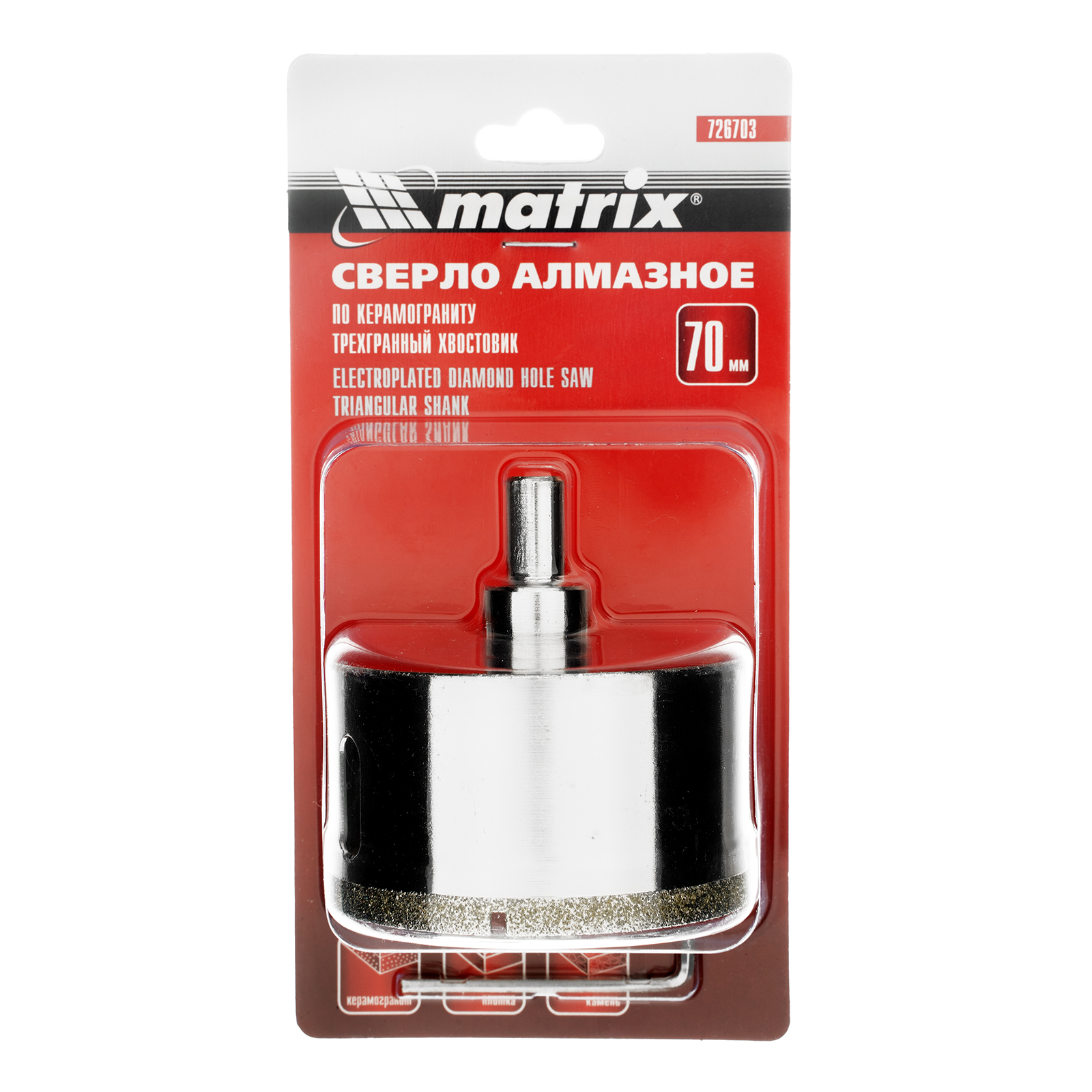 Сверло алмазное по керамограниту, 70 х 67 мм, трехгранный хвостовик Matrix