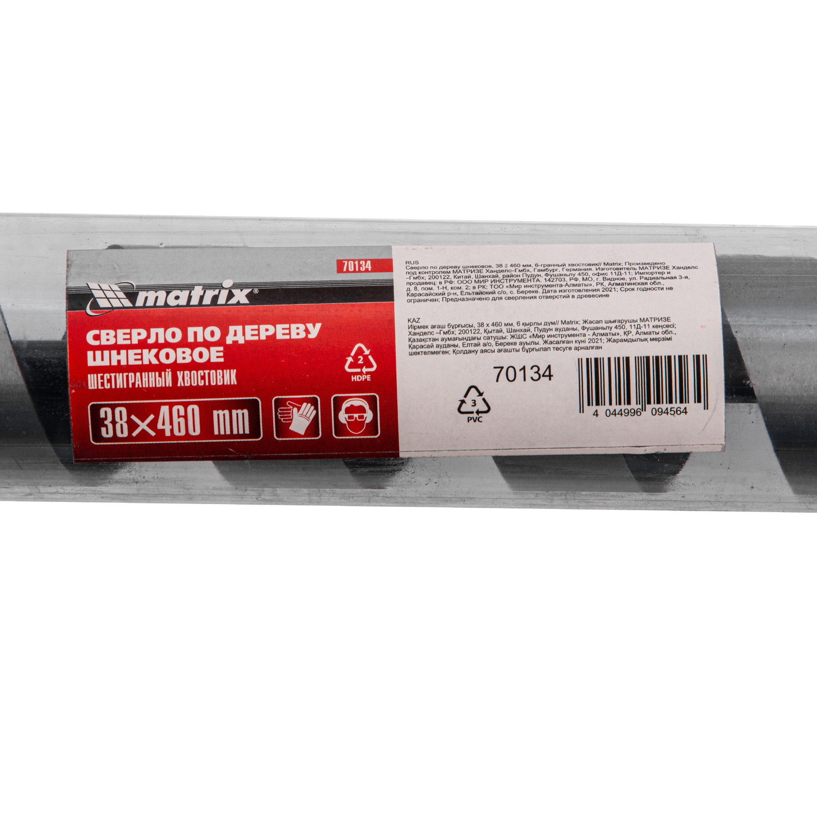 Сверло по дереву шнековое, 38 х 460 мм, шестигранный хвостовик Matrix