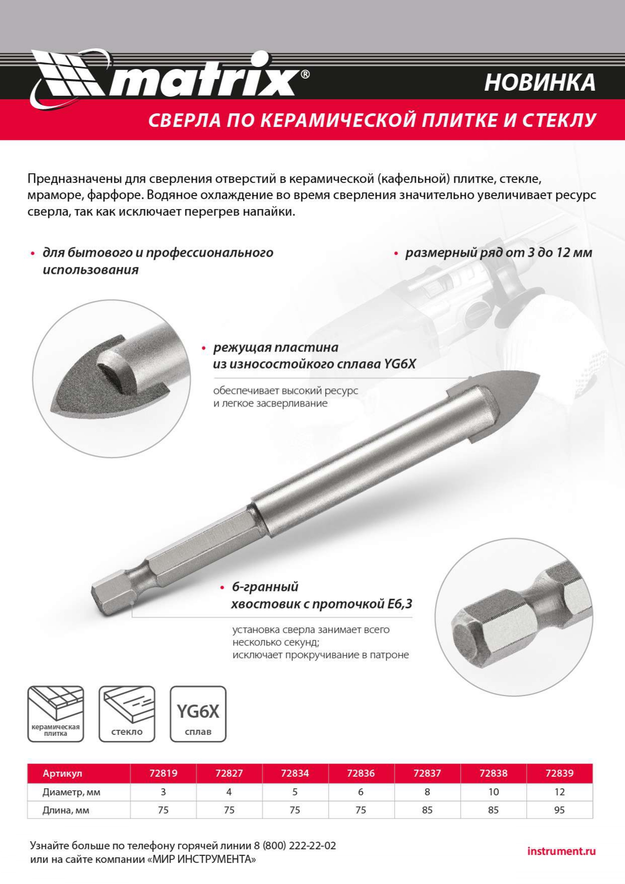 С 2001 года бренд MATRIX стал одним из наиболее популярных производителей ручного инструмента. Алмазные диски, шлифовальные круги, ручной, измерительный и пневматический инструмент, садовый инвентарь, оборудование для гаража, различные расходные материалы и т.д. производятся на территории Китая и Тайваня, проходят строгий контроль качества и отличаются доступной ценой.