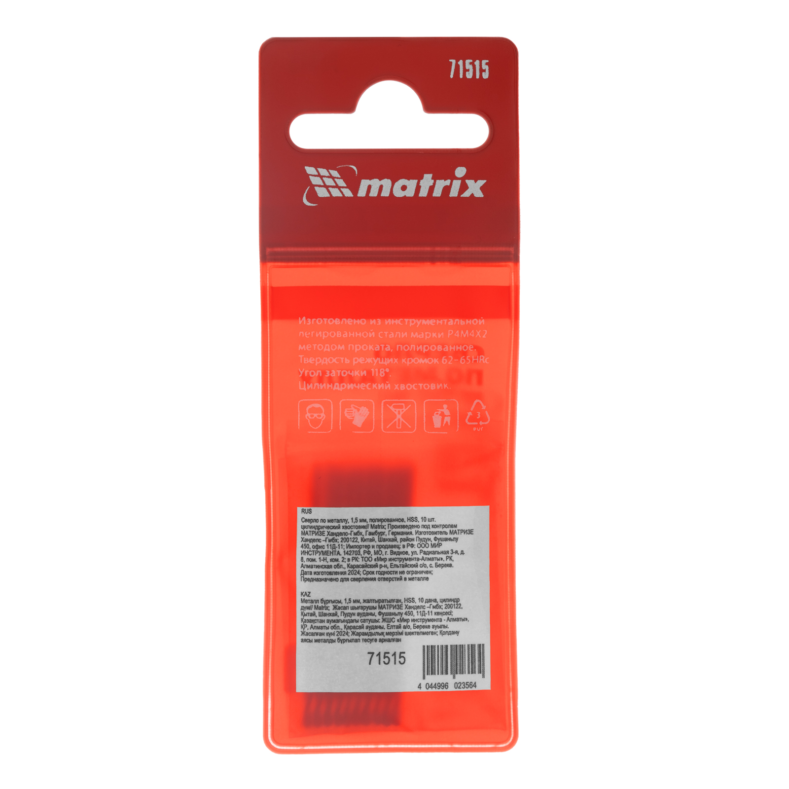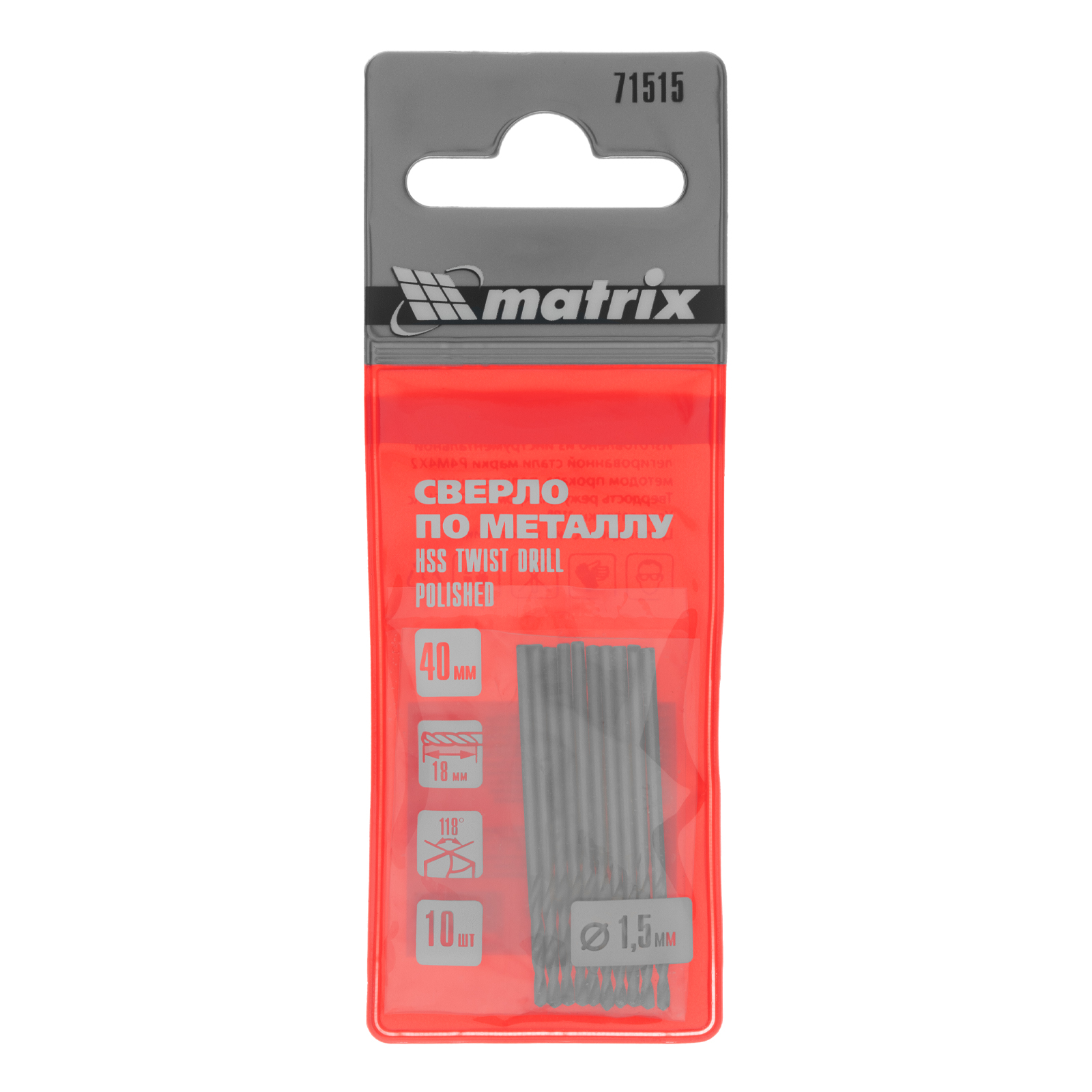 Полированное сверло по металлу Matrix 71515 из стали HSS, с цилиндрическим хвостовиком, 10 шт. в упаковке, используется для получения отверстий диаметром 1,5 мм. Угол заточки составляет 118 градусов, поэтому сверло оптимально для работы с черными металлами, сталью, чугуном и твердой бронзой.