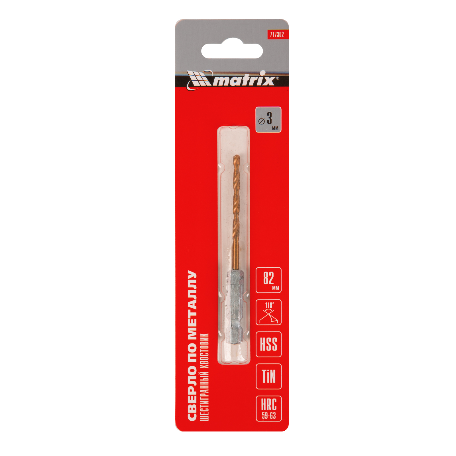 Сверло по металлу, 3 мм, HSS, нитридтитановое покрытие, шестигранный хвостовик Matrix