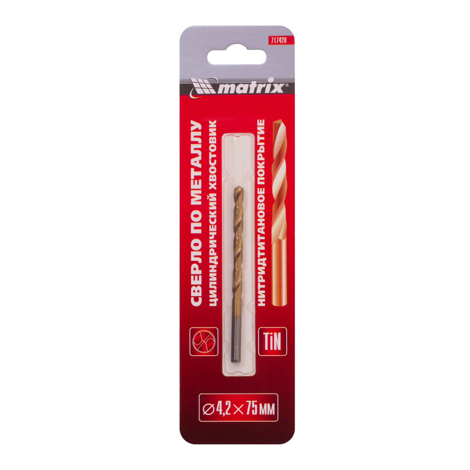 Сверло по металлу, 4.2 мм, HSS, нитридтитановое покрытие, цилиндрический хвостовик Matrix