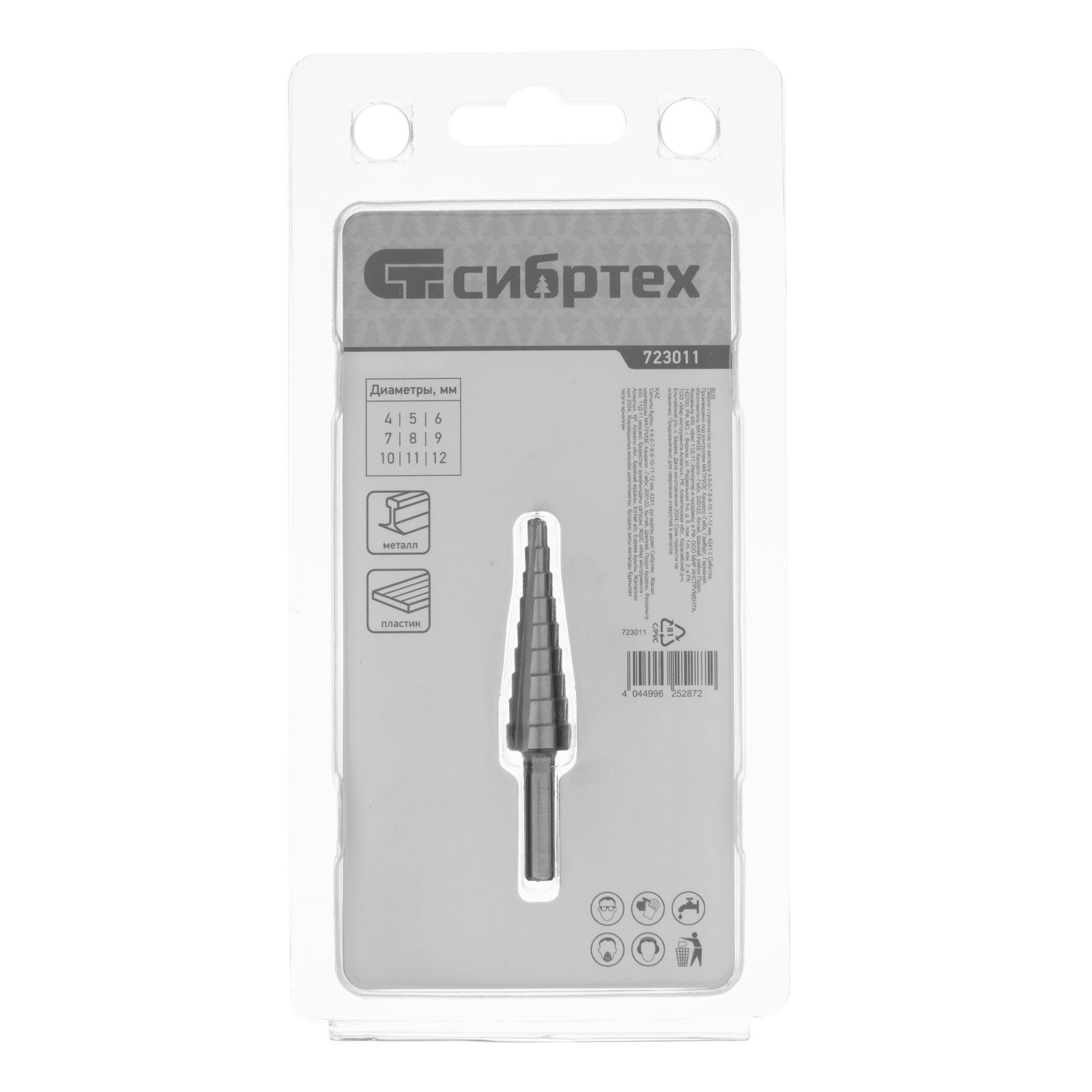 Сверло ступенчатое по металлу 4-5-6-7-8-9-10-11-12 мм, 4241 Сибртех