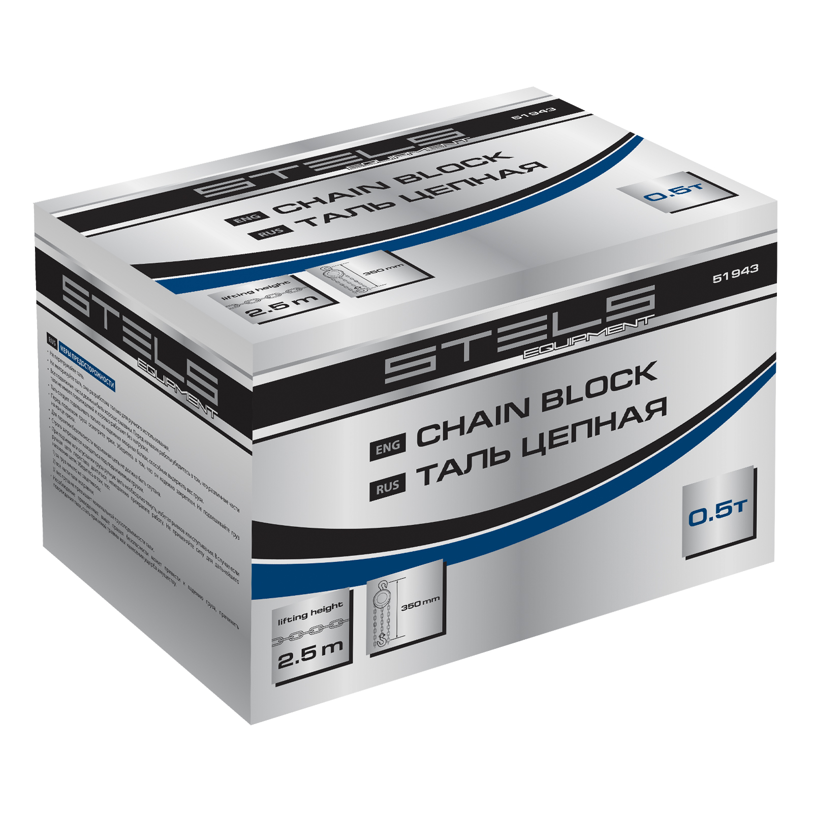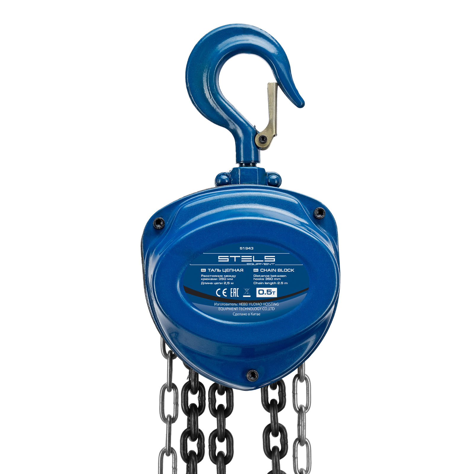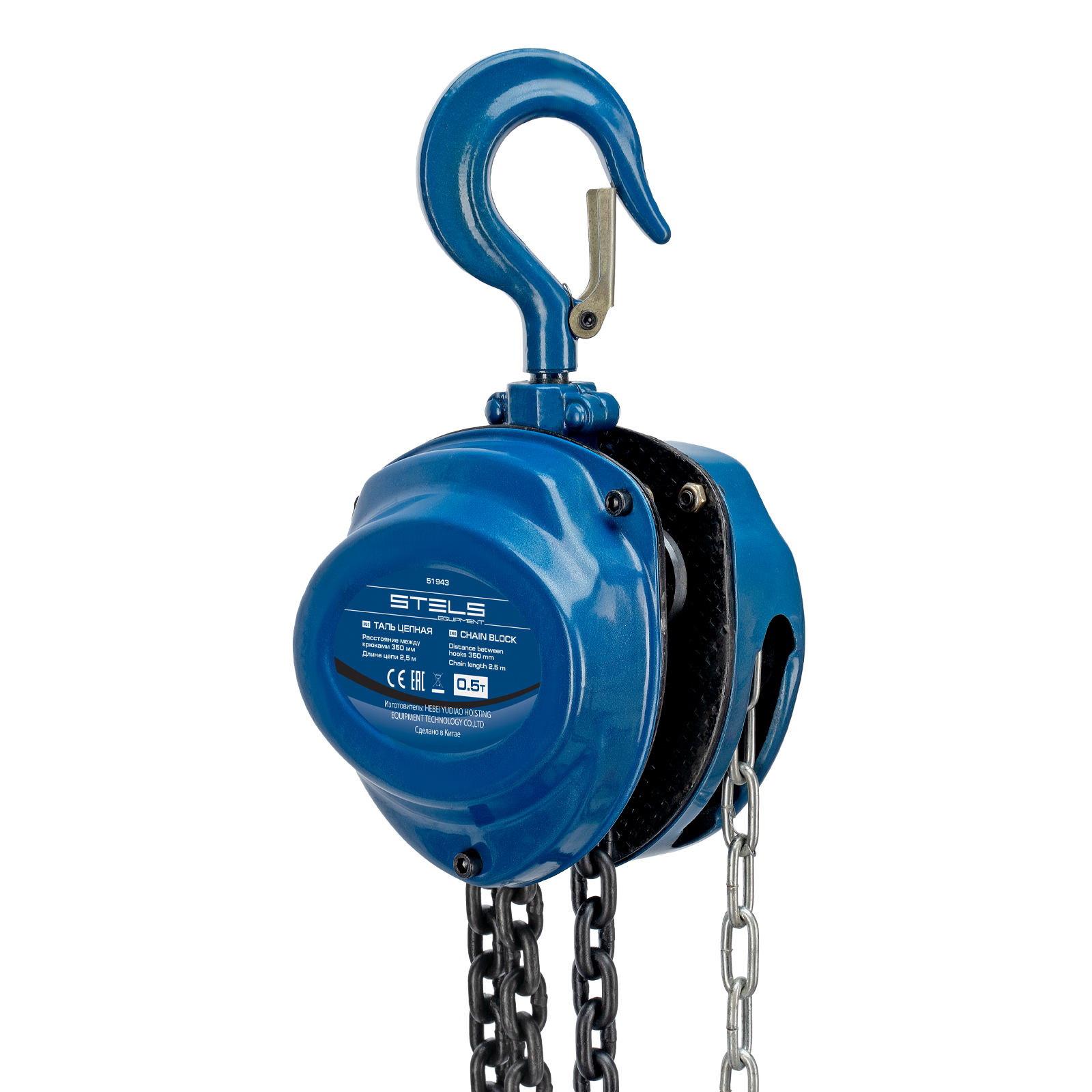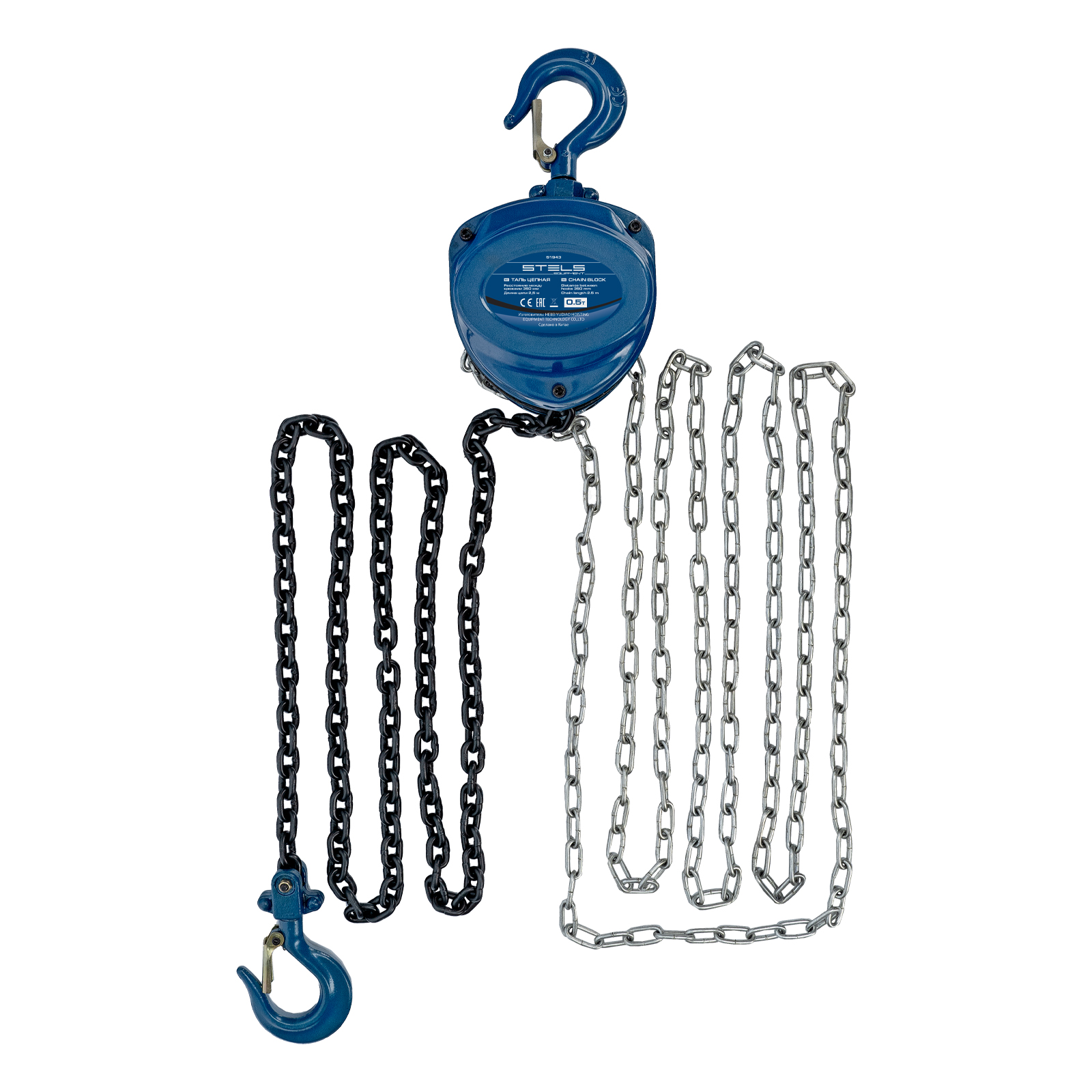 Таль цепная, 0.5 т, h подъема 2.5 м, расстояние между крюками 350 мм Stels