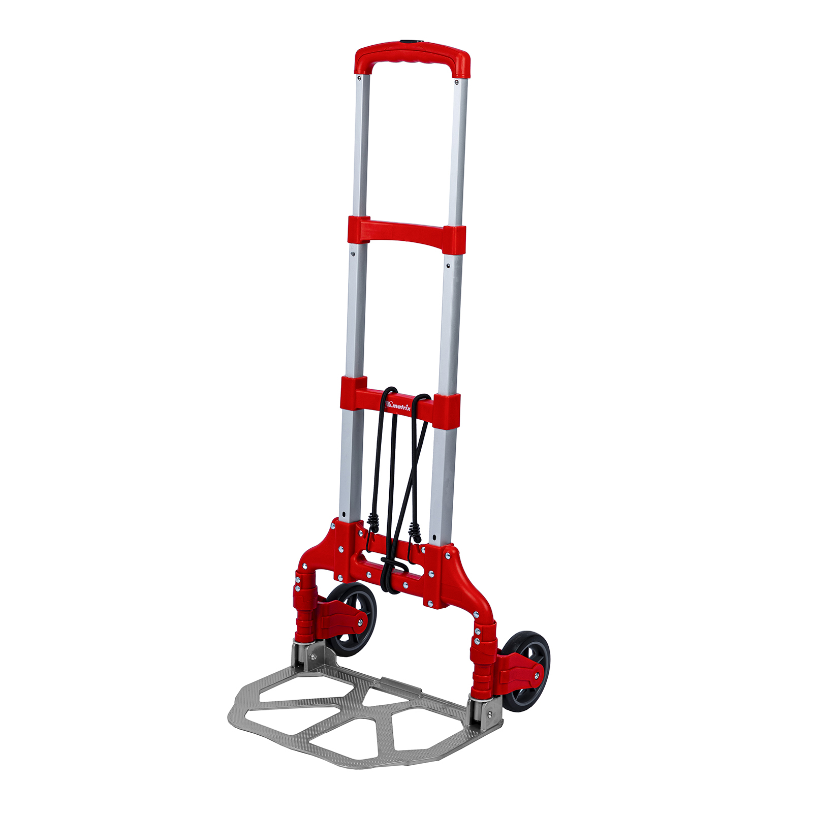 - Удобное хранение и транспортировка — платформа и колеса складываются, поэтому тележка не занимает много места.