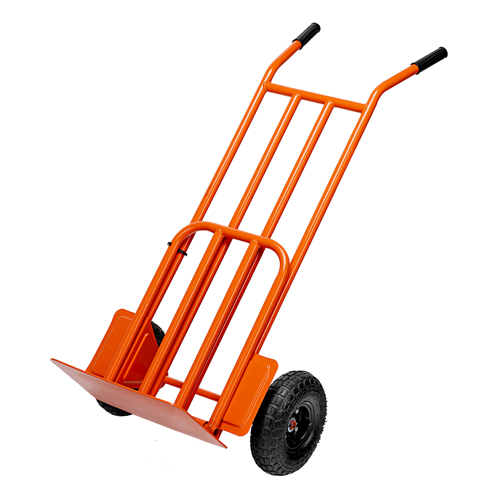 - Функциональность — откидная платформа позволяет размещать на тележке груз с увеличенными габаритами.